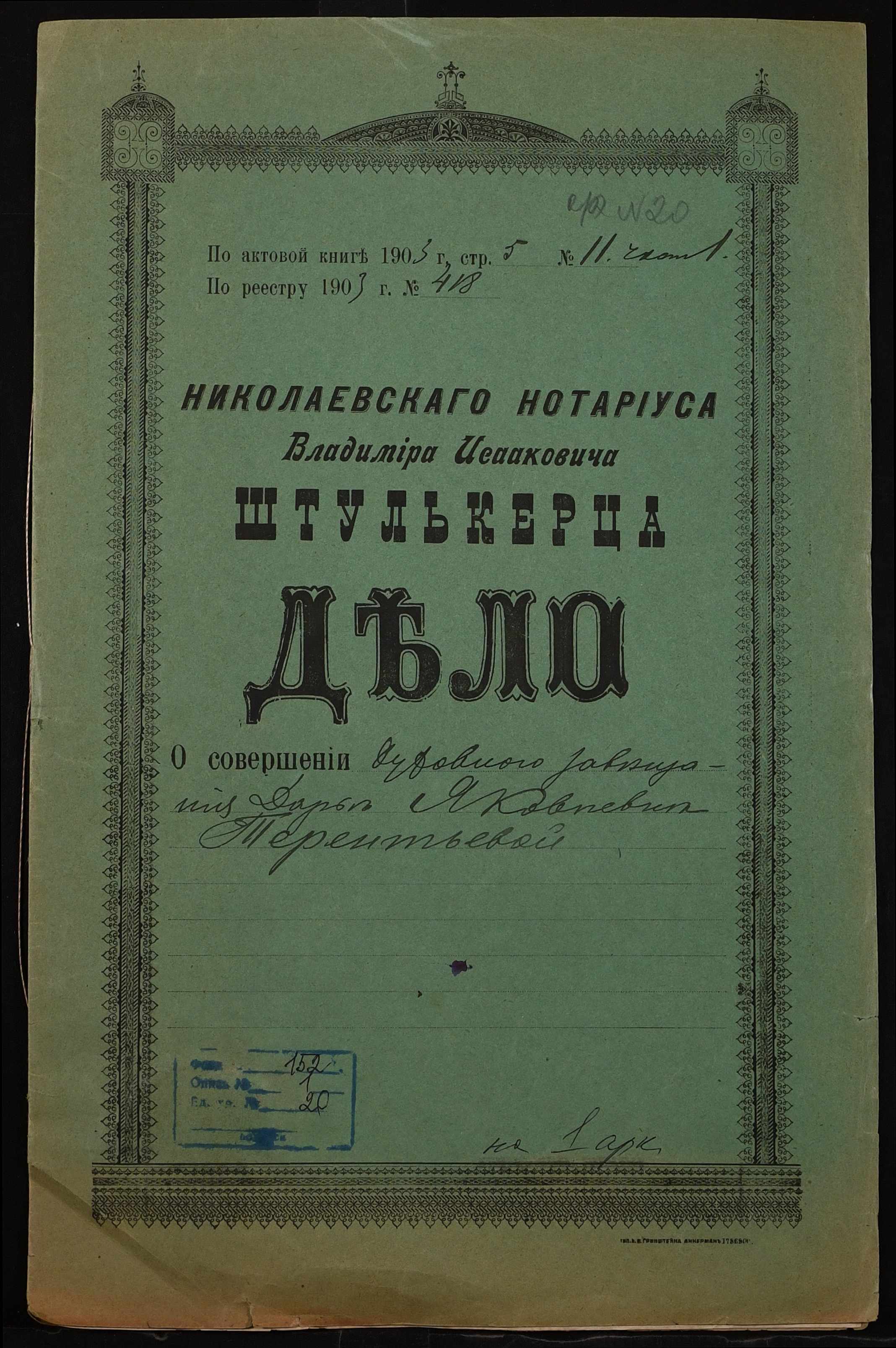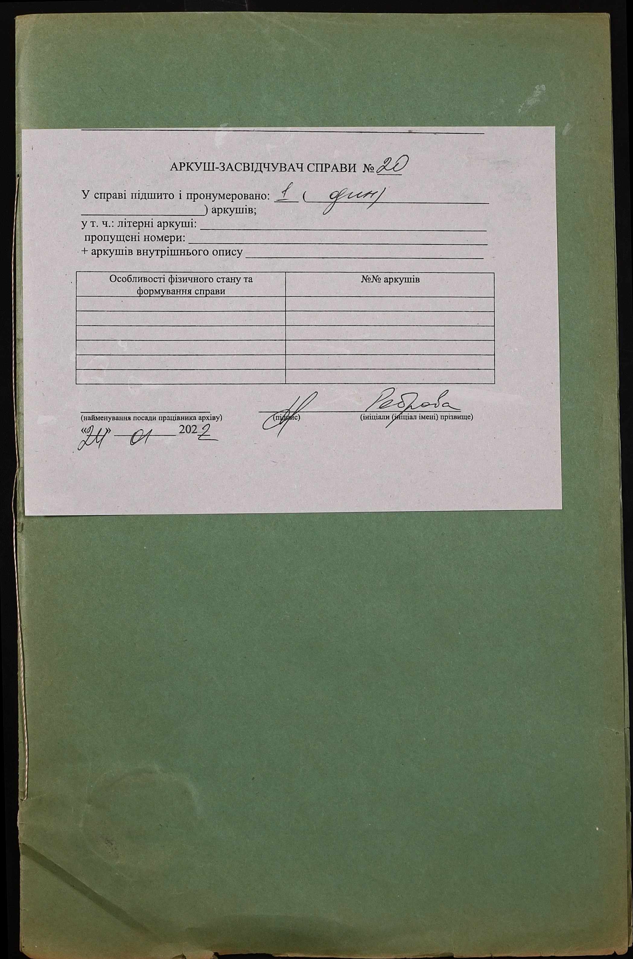 Фонд 152 / Опис 1 / Справа 0020
