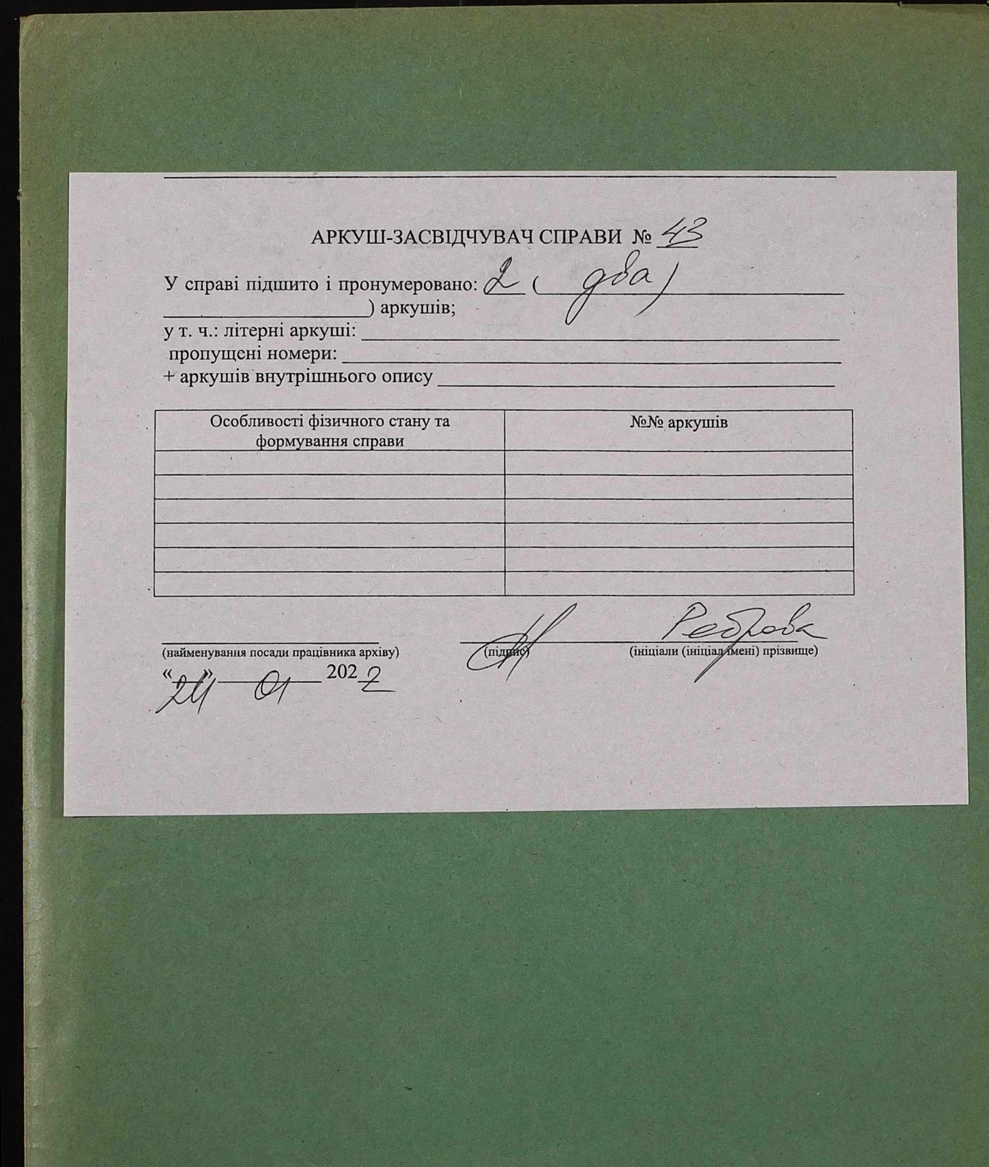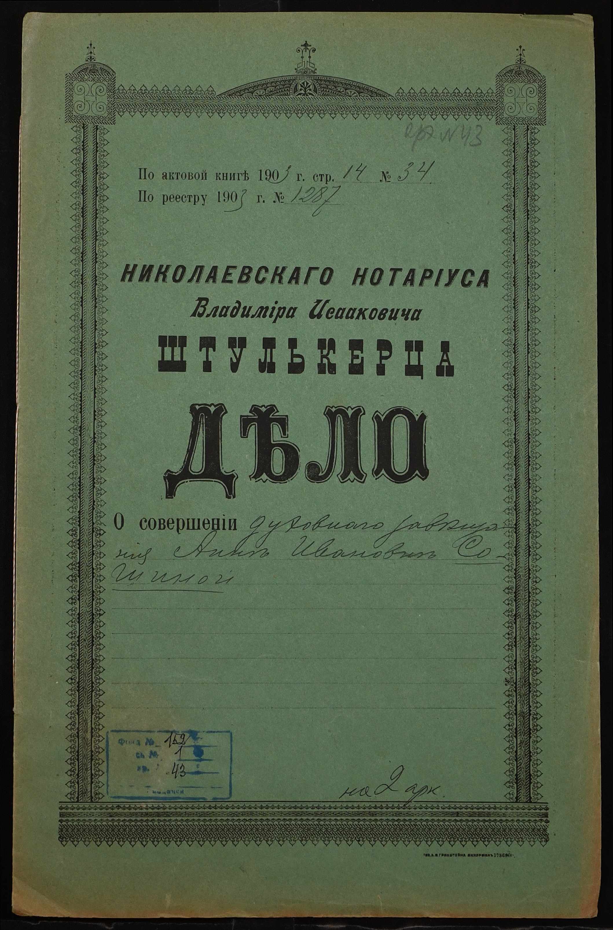 Фонд 152 / Опис 1 / Справа 0043