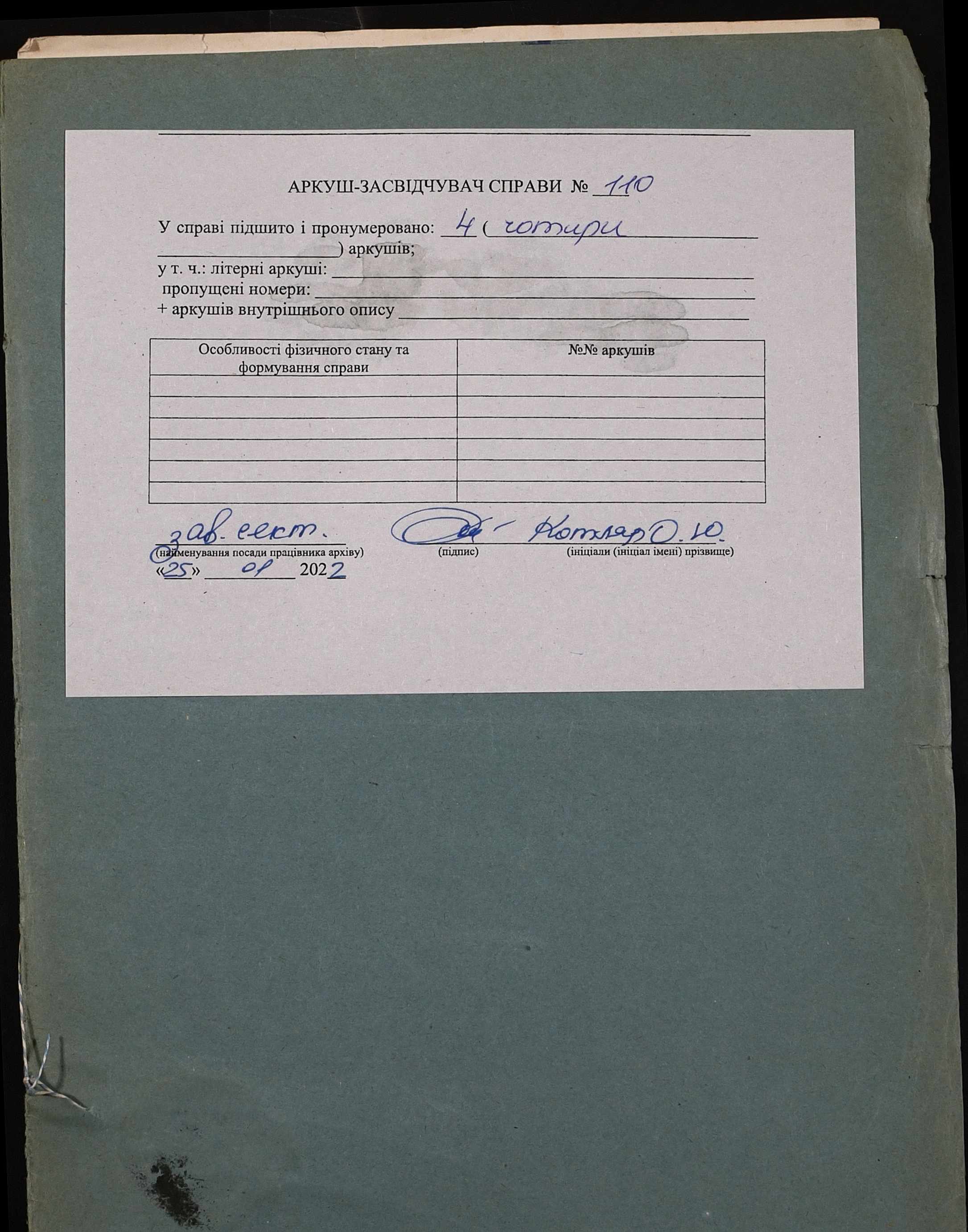 Фонд 152 / Опис 1 / Справа 0110