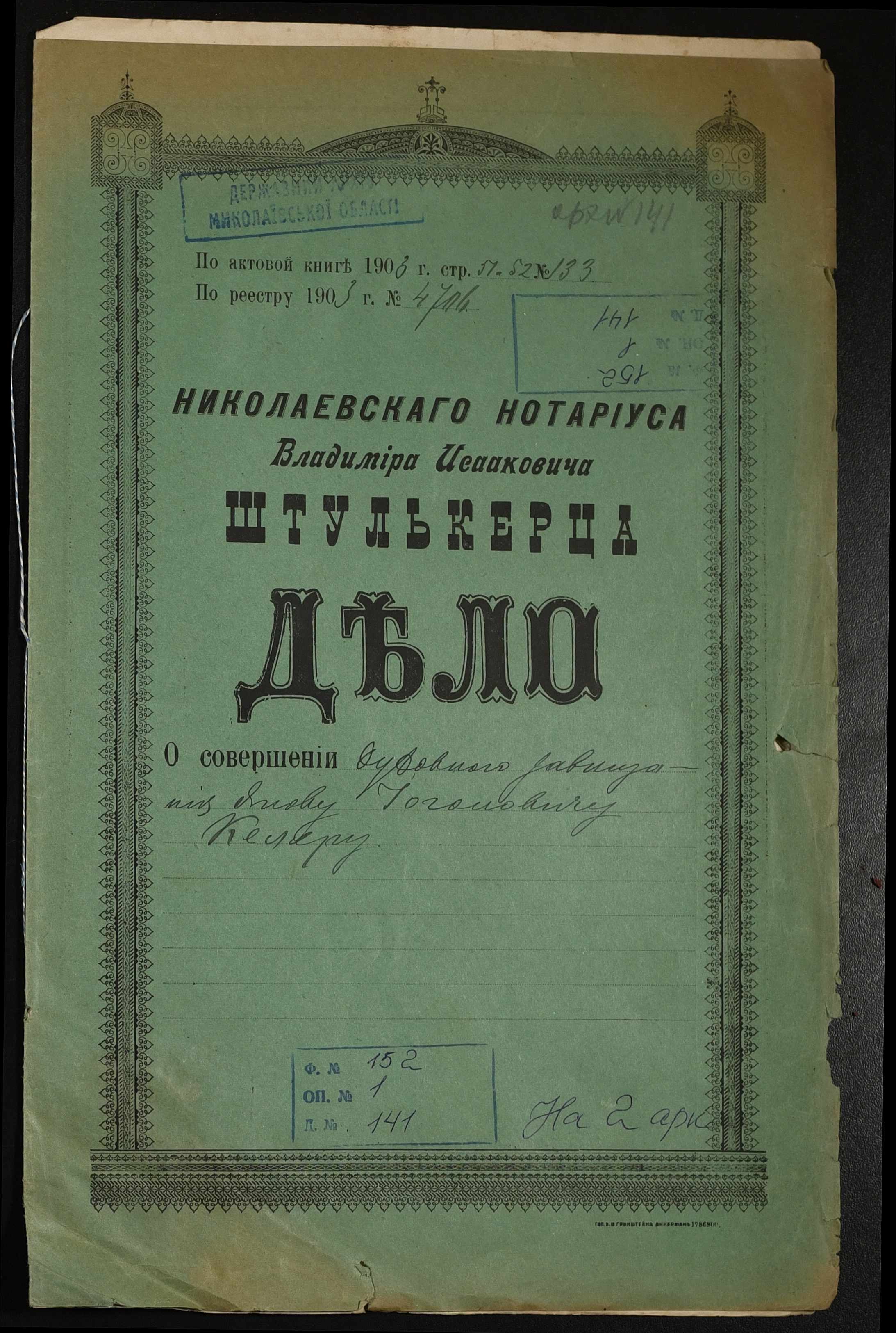 Фонд 152 / Опис 1 / Справа 0141