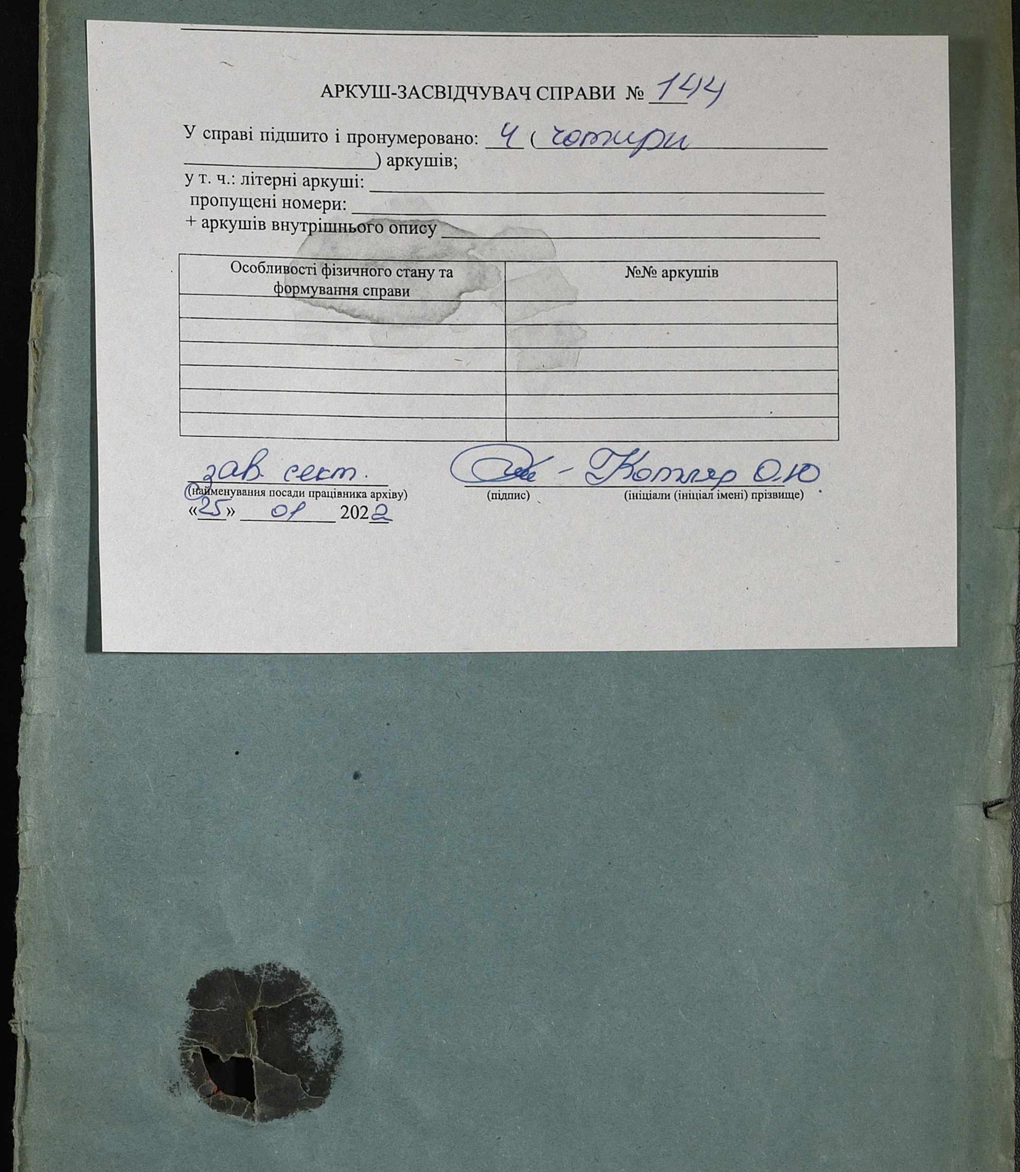 Фонд 152 / Опис 1 / Справа 0144