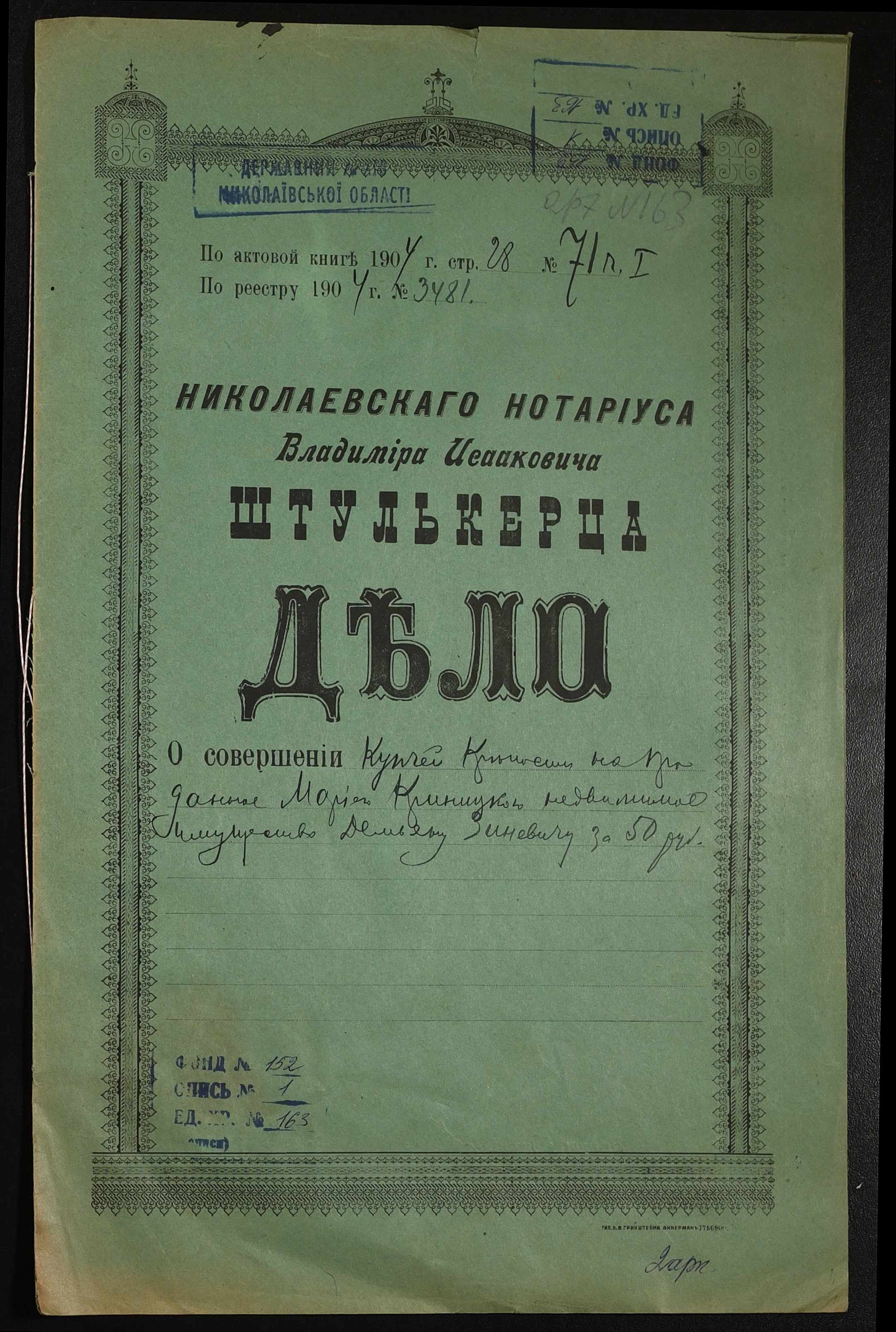 Фонд 152 / Опис 1 / Справа 0163