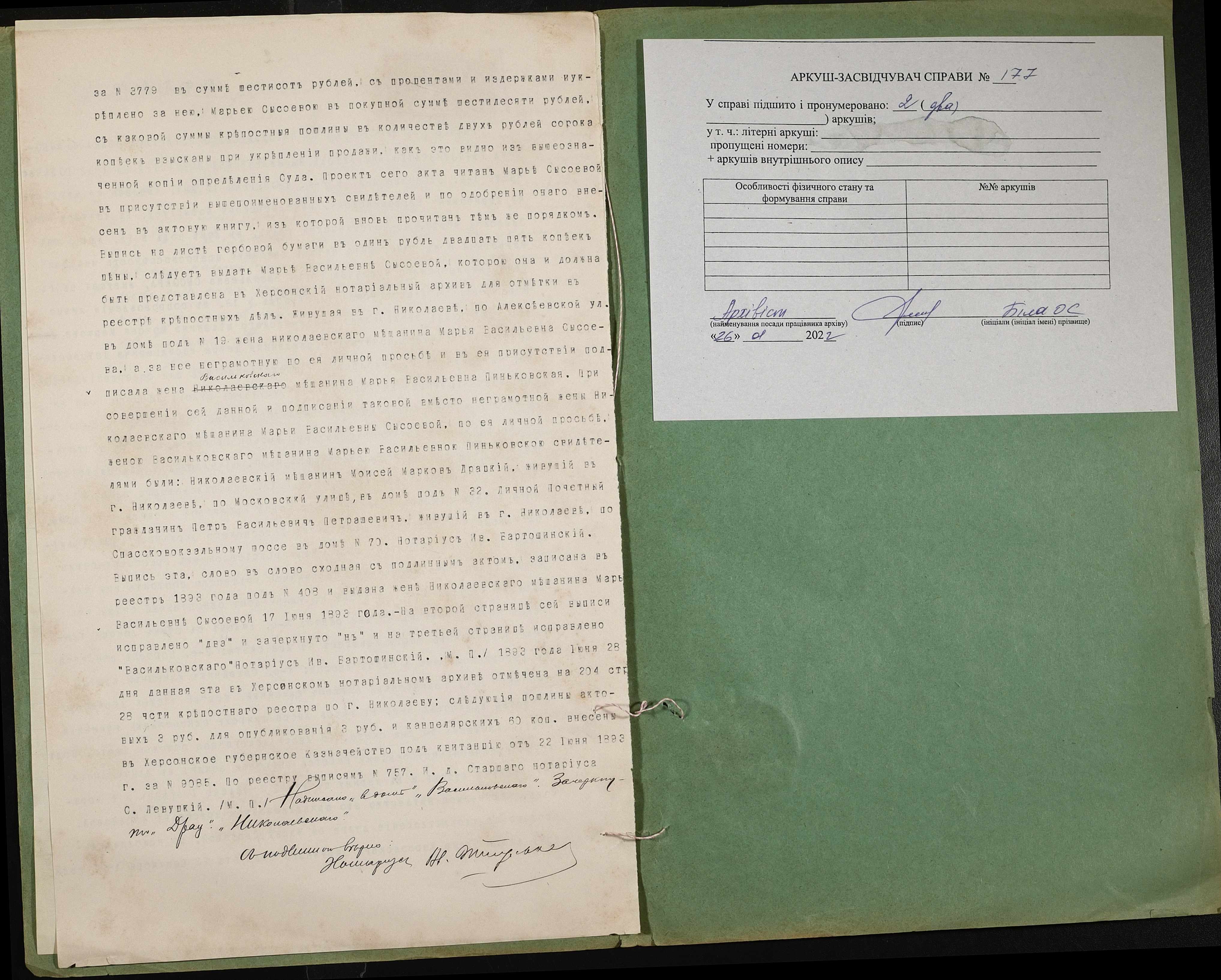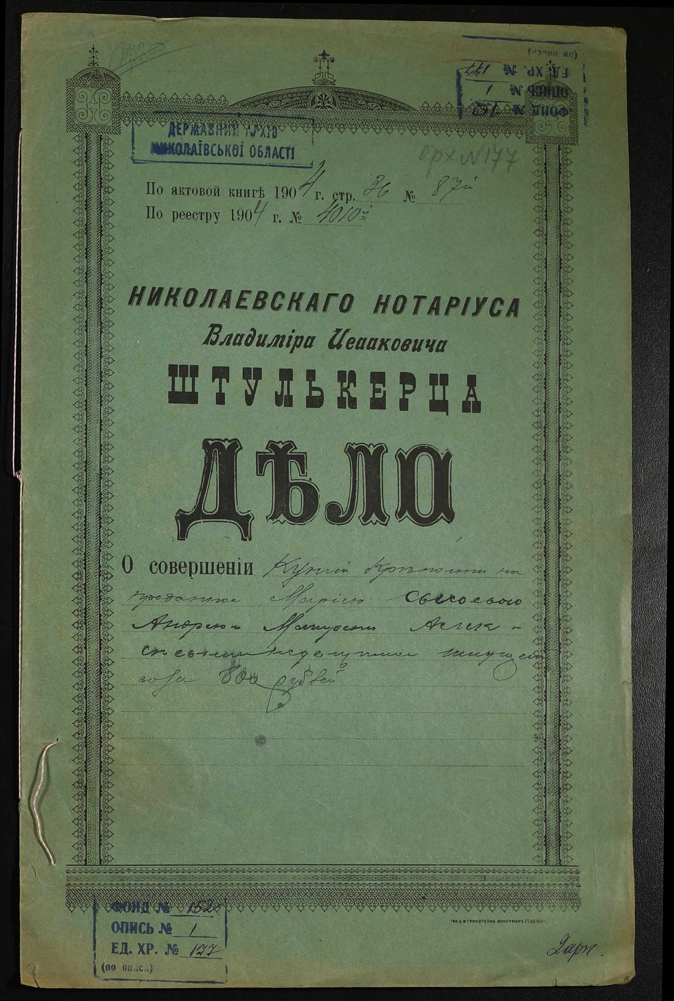 Фонд 152 / Опис 1 / Справа 0177