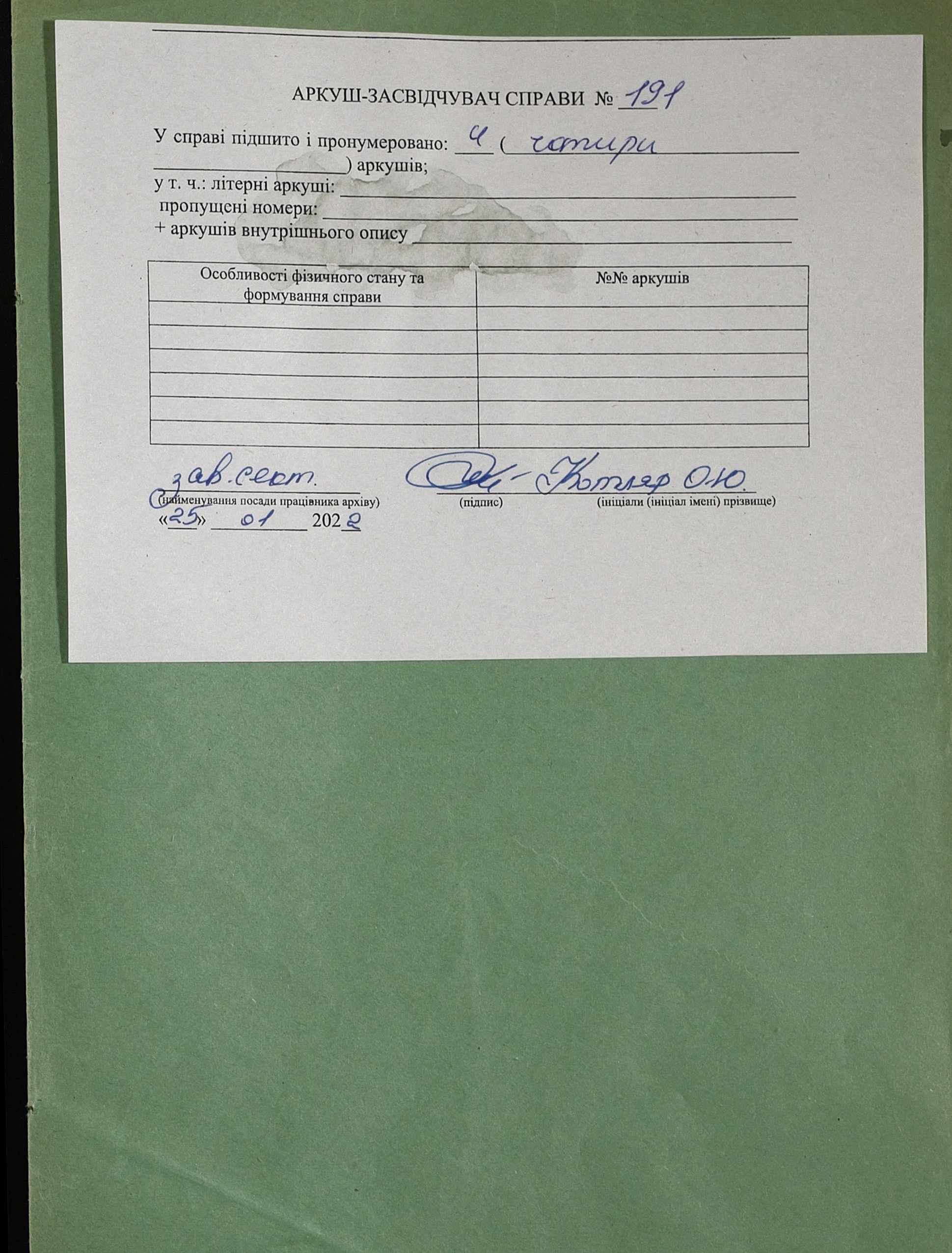 Фонд 152 / Опис 1 / Справа 0191