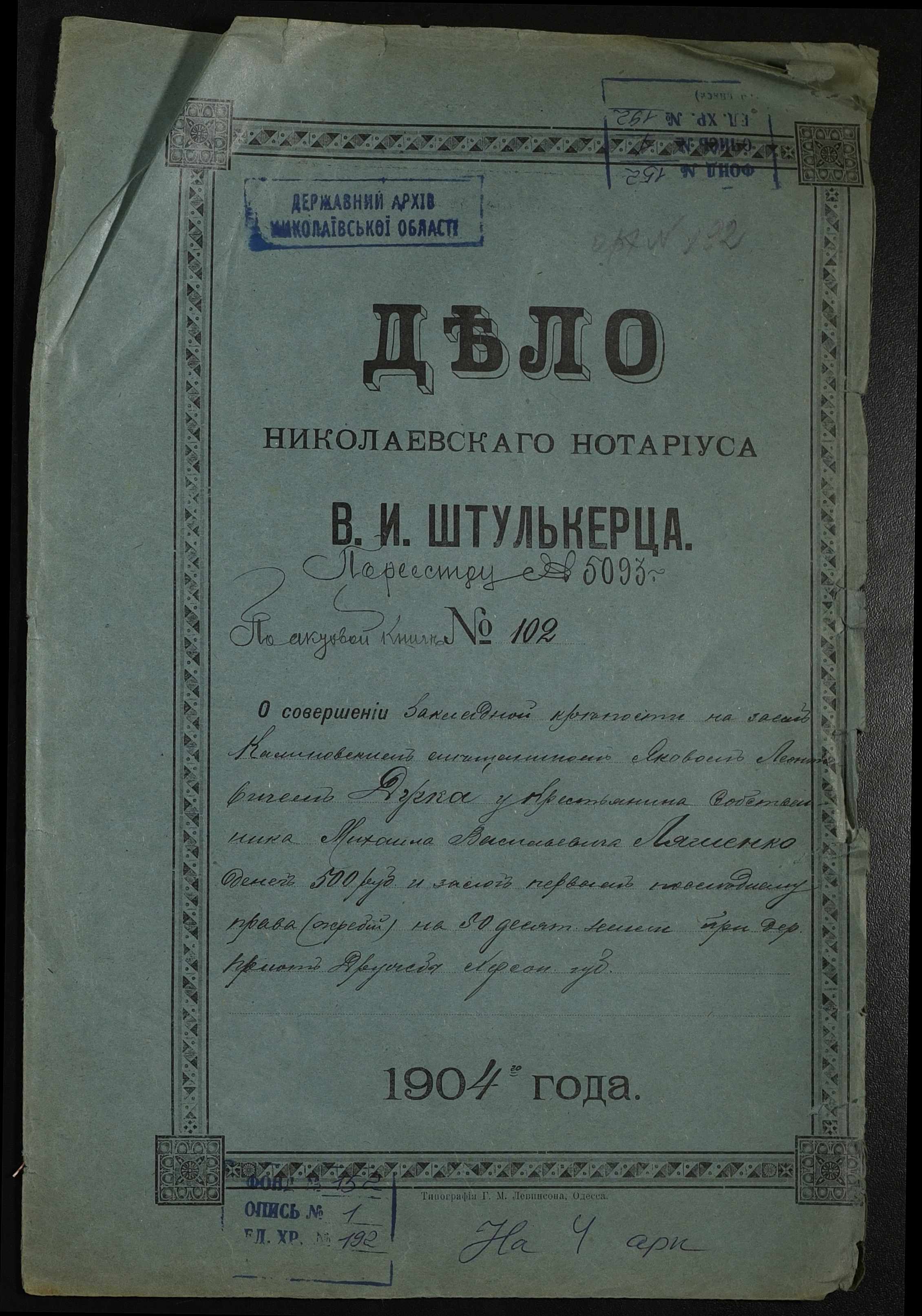 Фонд 152 / Опис 1 / Справа 0192