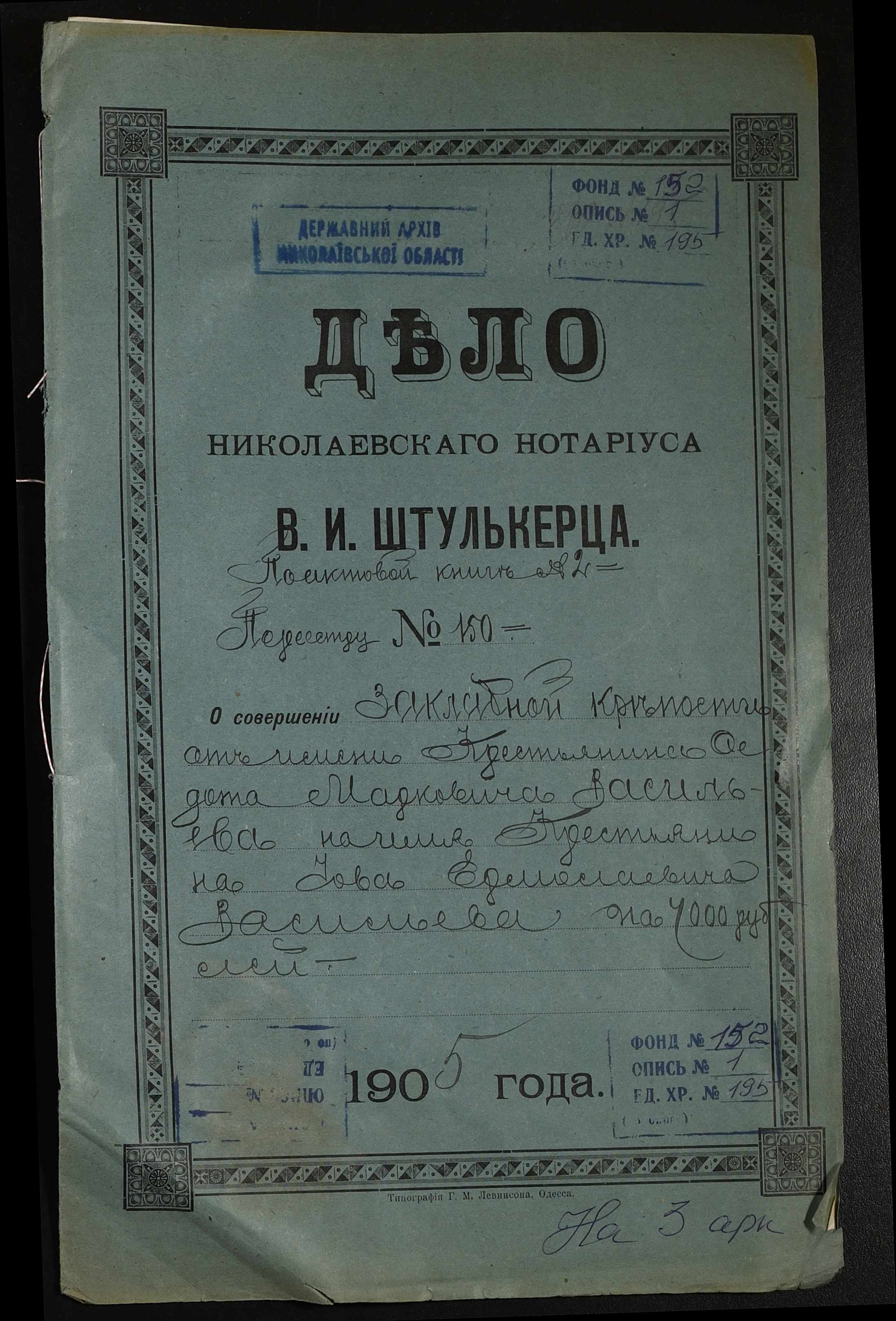 Фонд 152 / Опис 1 / Справа 0195
