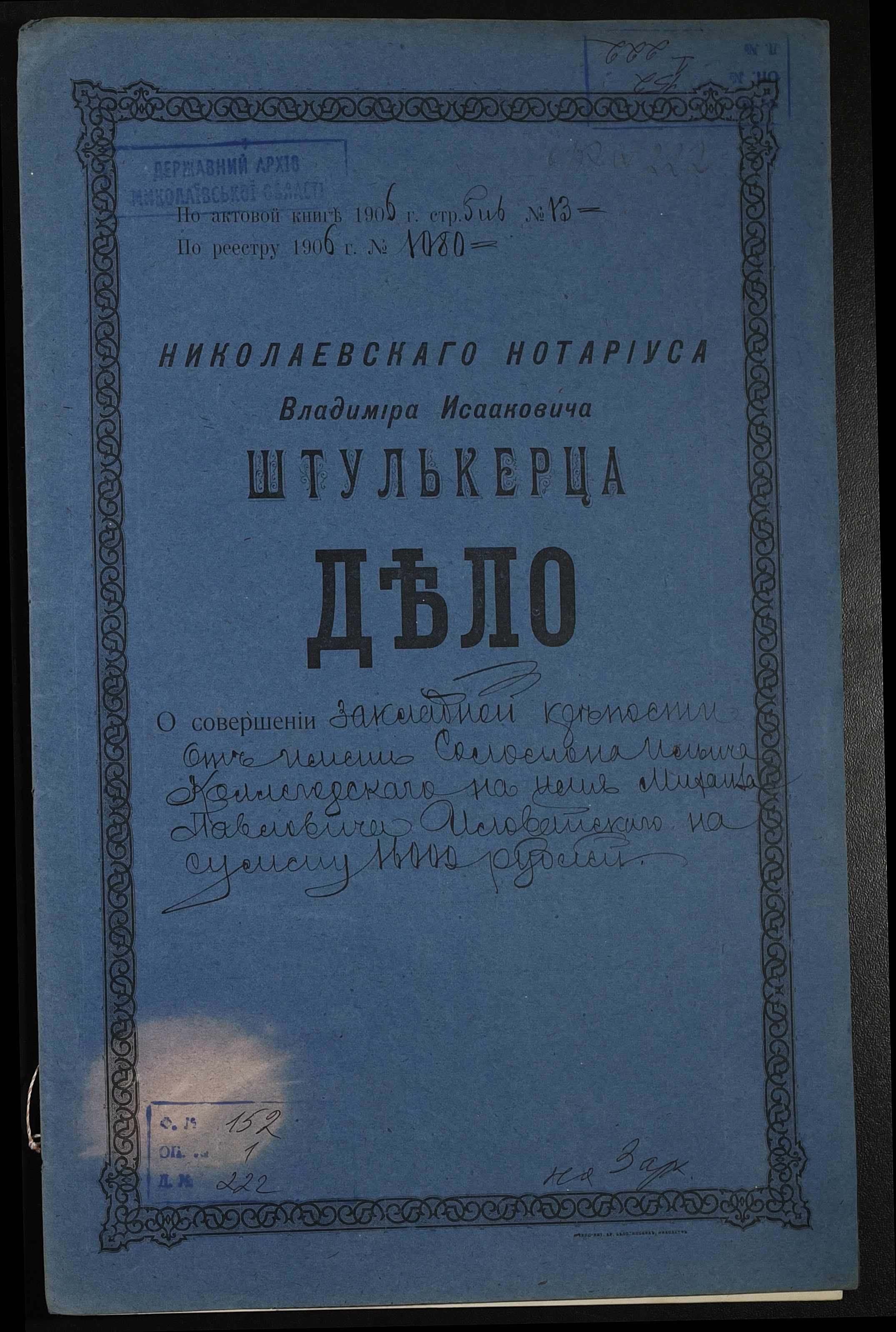 Фонд 152 / Опис 1 / Справа 0222