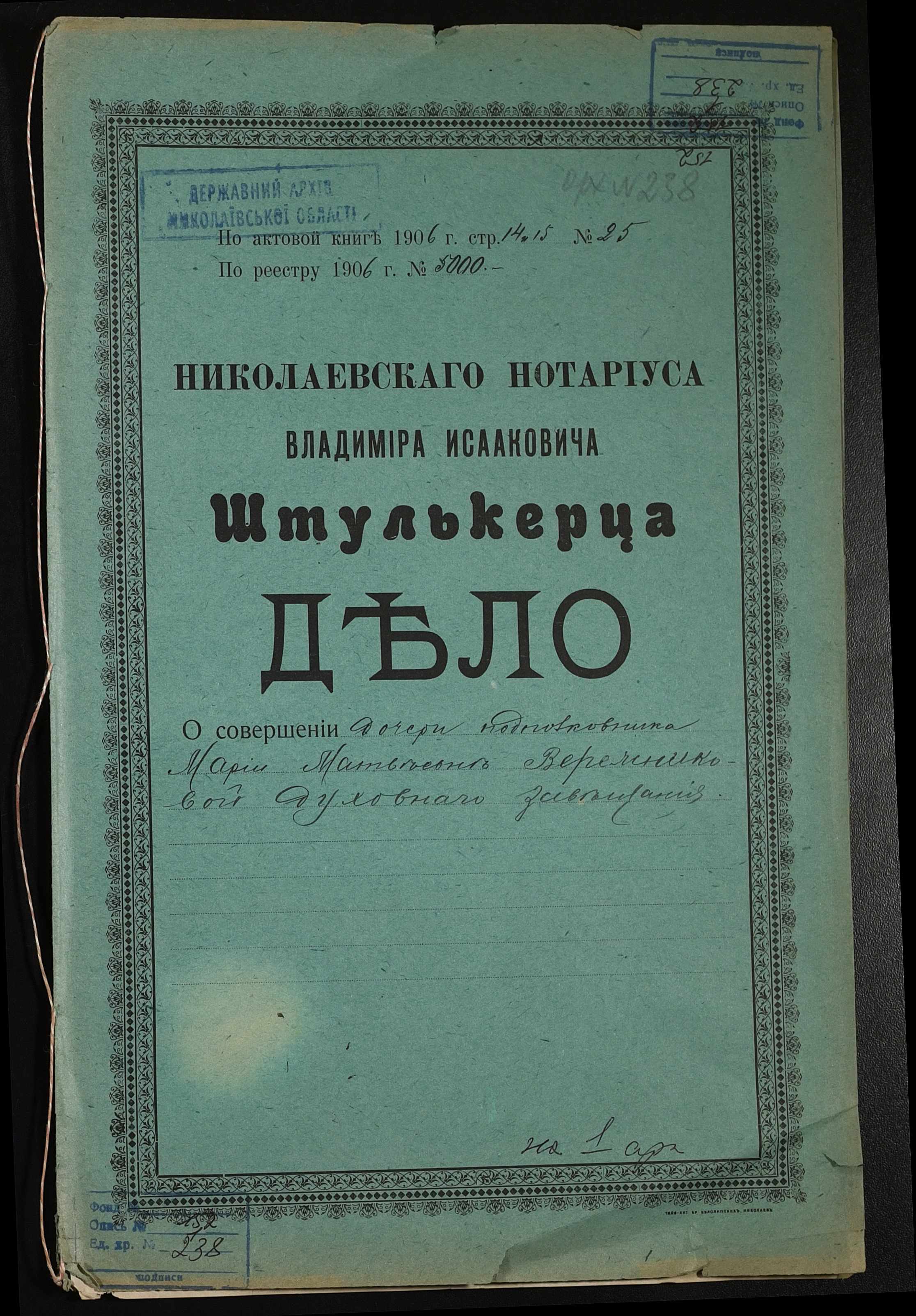 Фонд 152 / Опис 1 / Справа 0238
