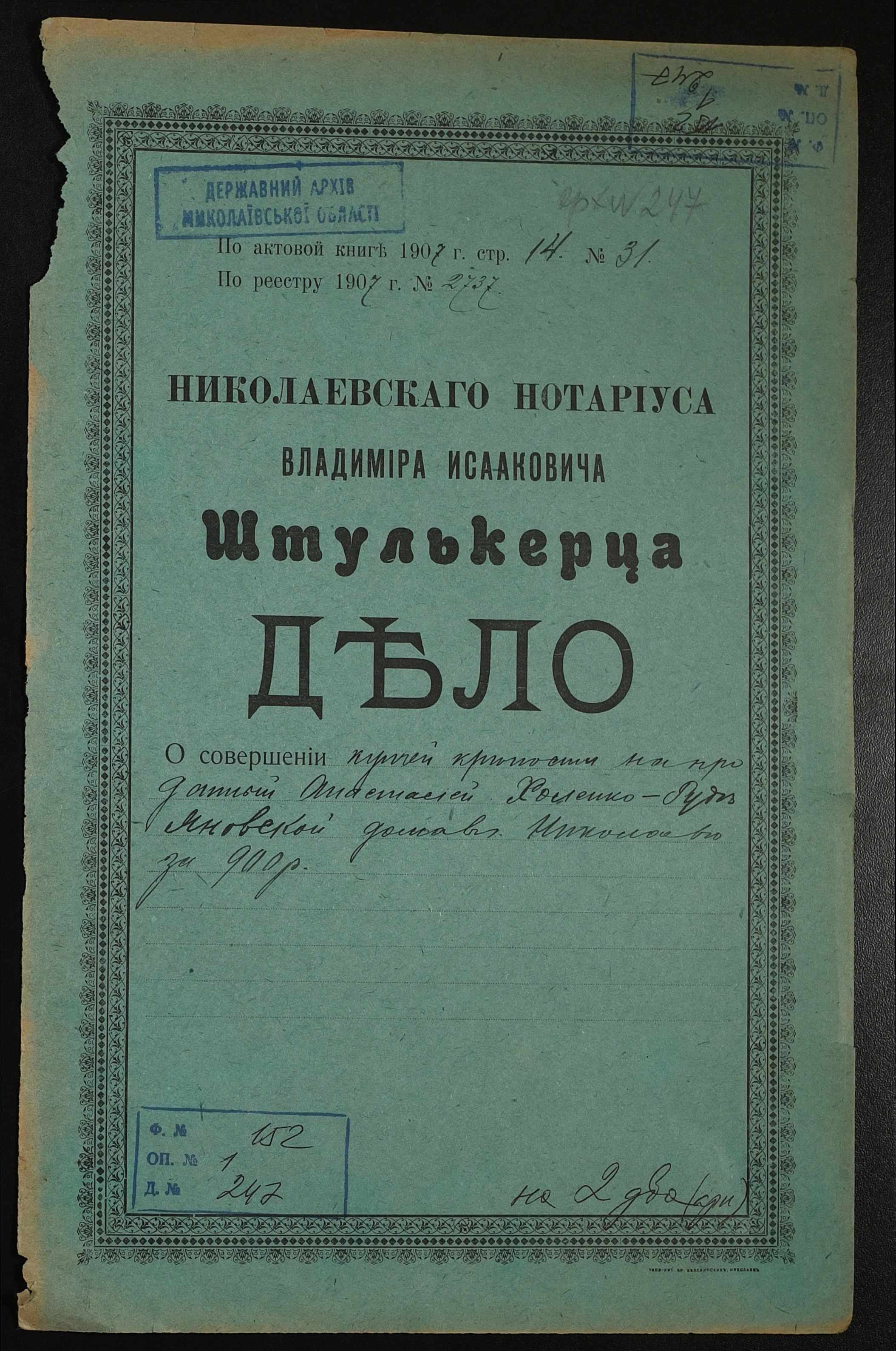 Фонд 152 / Опис 1 / Справа 0247