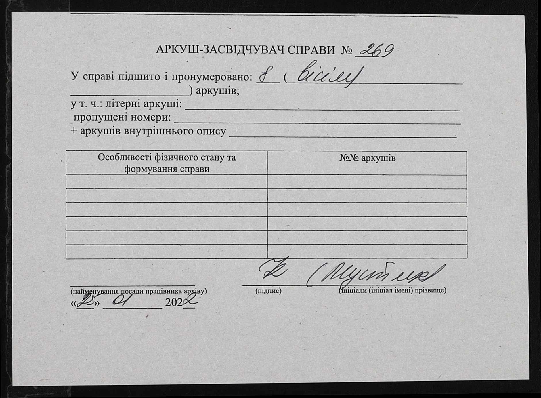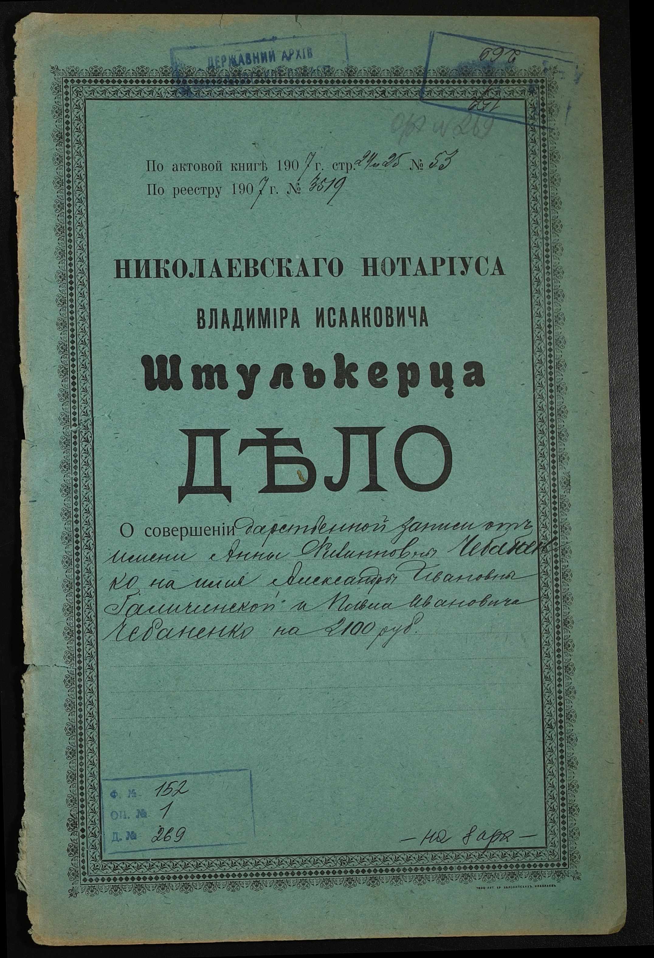 Фонд 152 / Опис 1 / Справа 0269