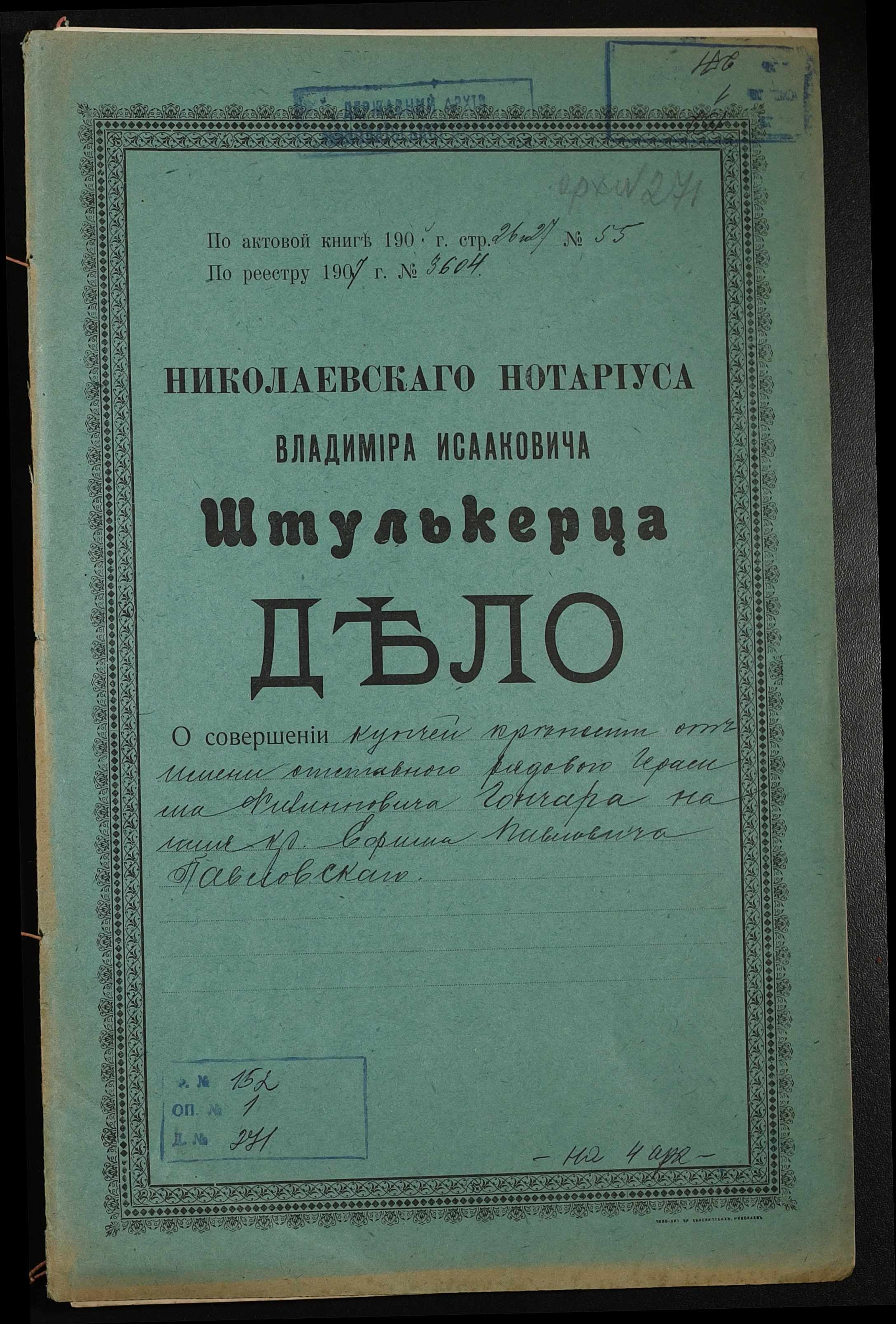 Фонд 152 / Опис 1 / Справа 0271