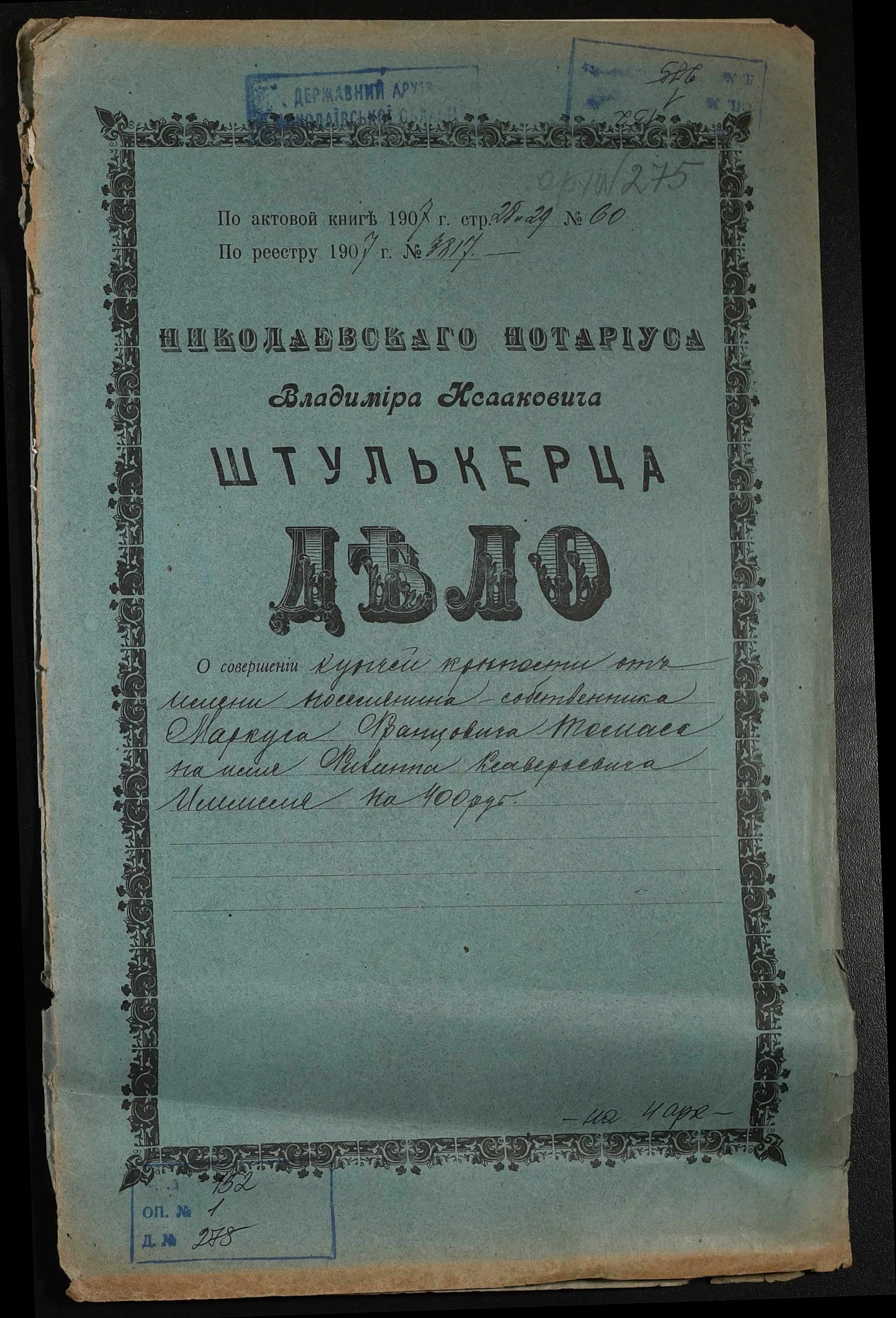 Фонд 152 / Опис 1 / Справа 0275