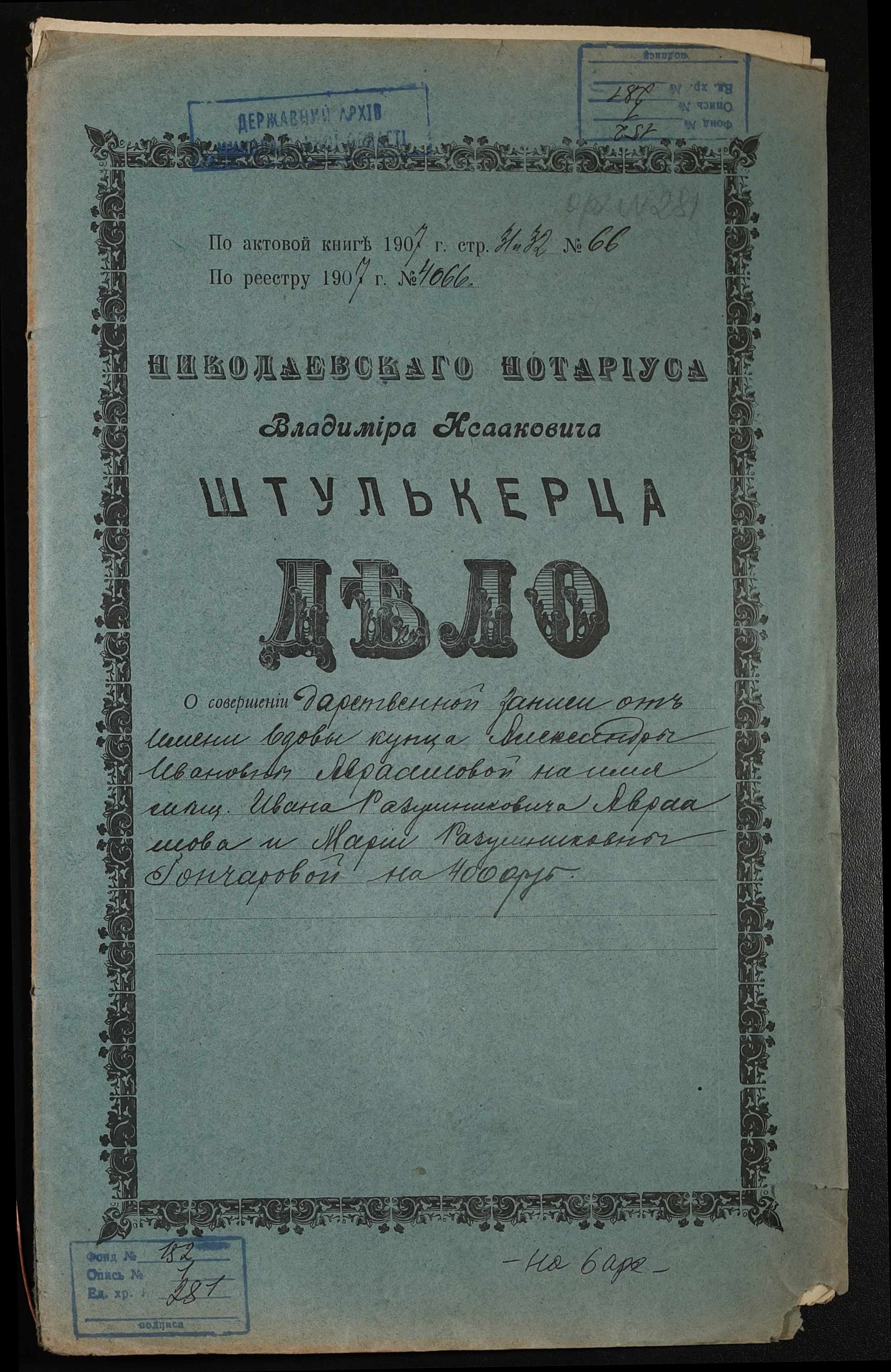 Фонд 152 / Опис 1 / Справа 0281