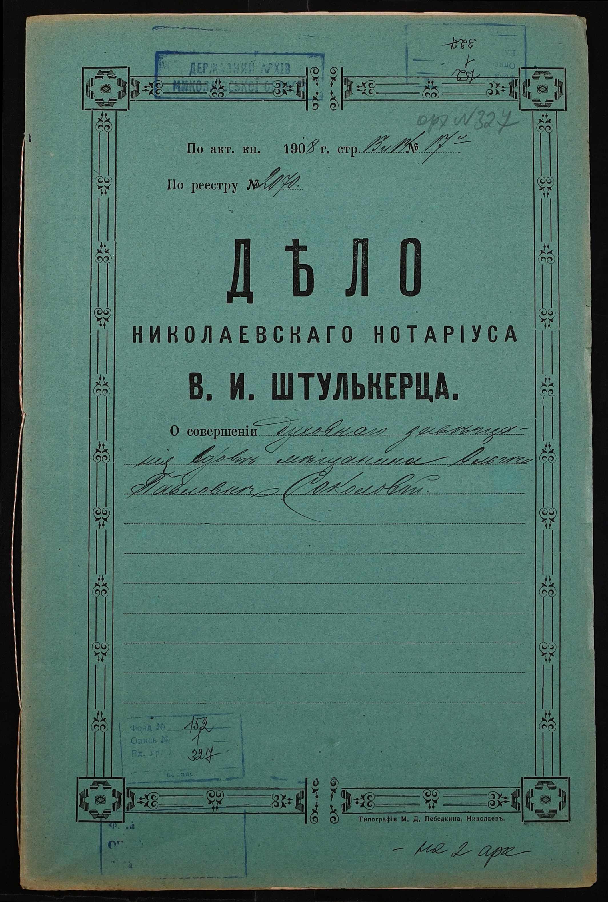 Фонд 152 / Опис 1 / Справа 0327