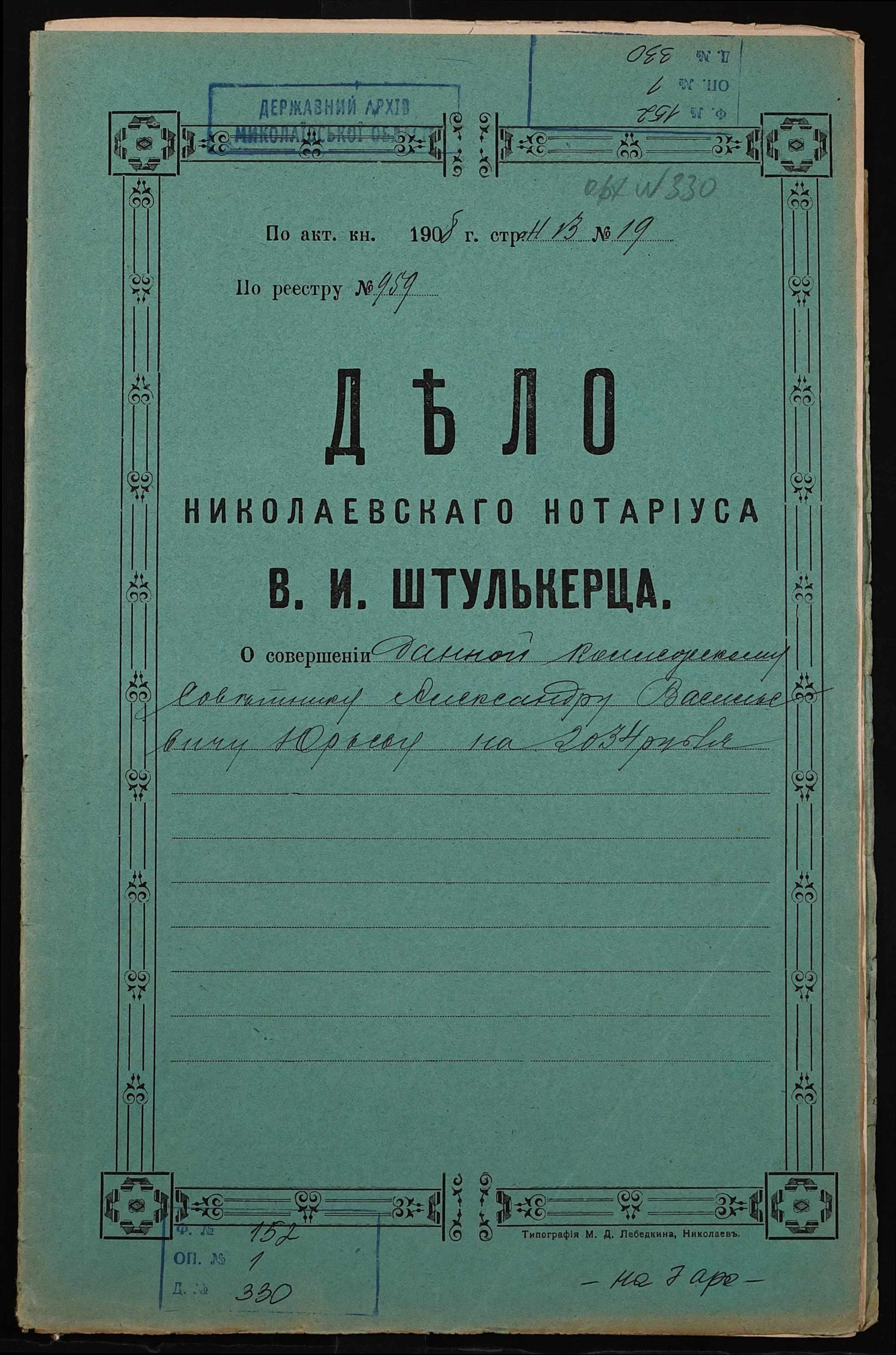 Фонд 152 / Опис 1 / Справа 0330
