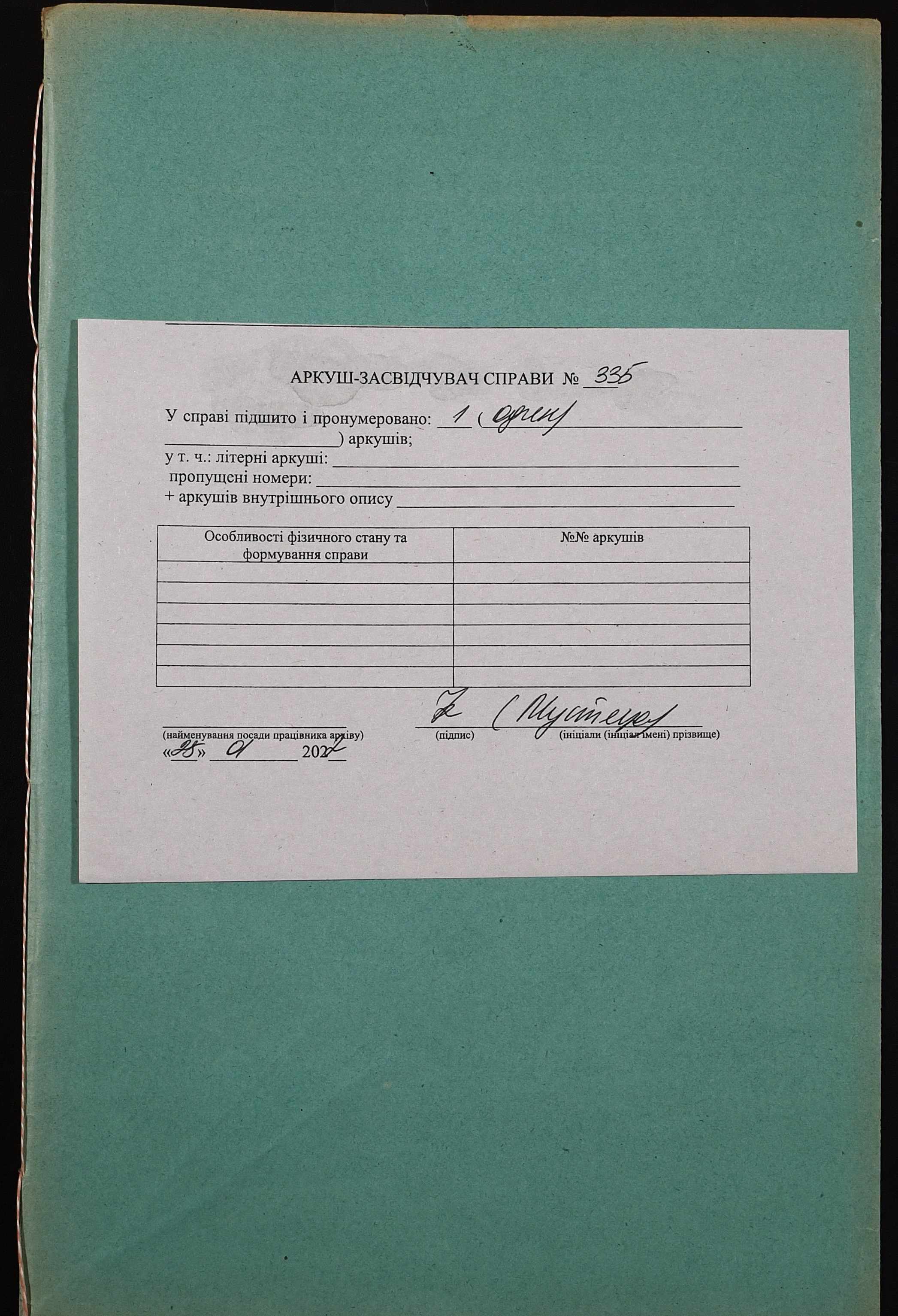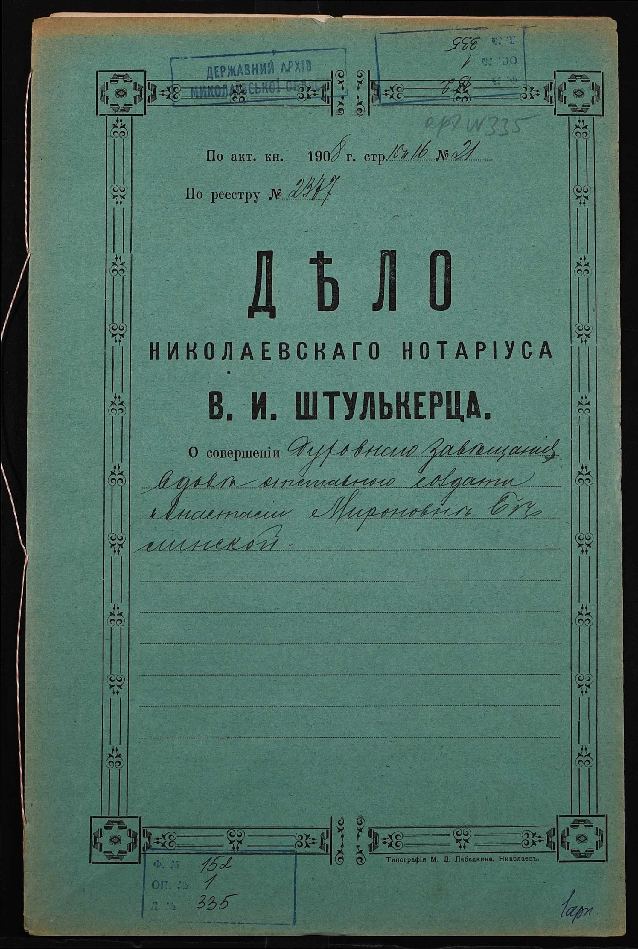 Фонд 152 / Опис 1 / Справа 0335
