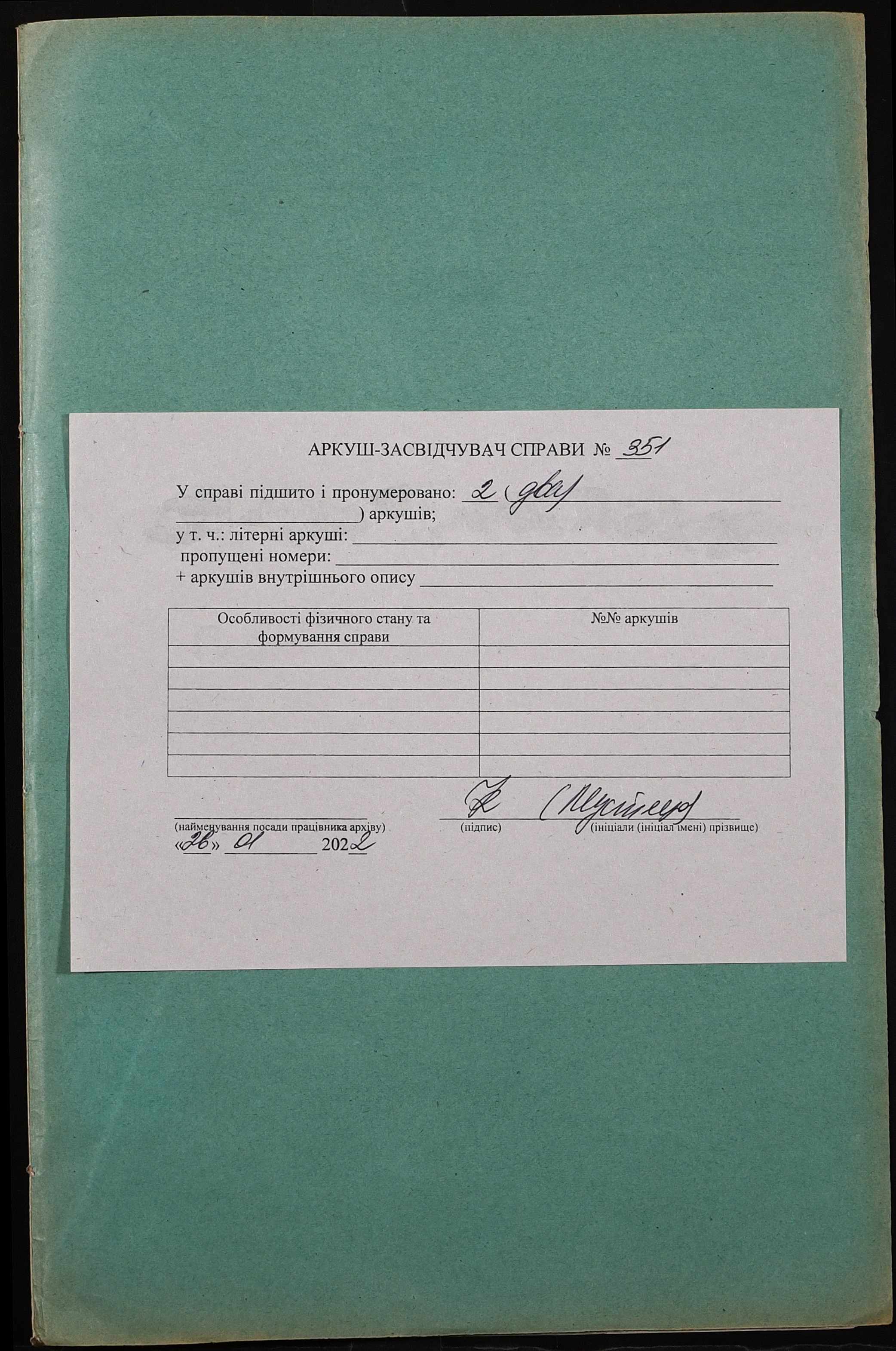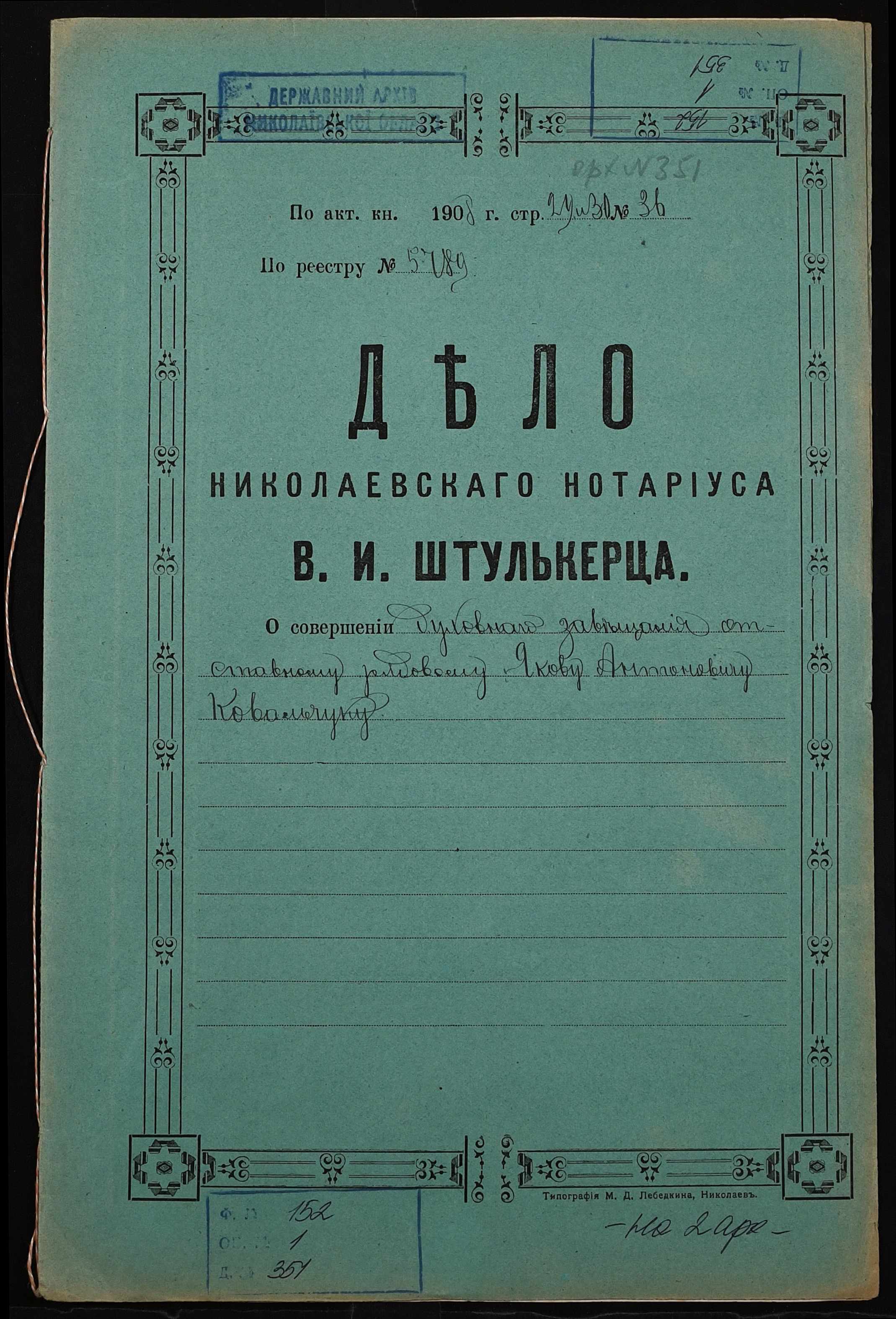 Фонд 152 / Опис 1 / Справа 0351
