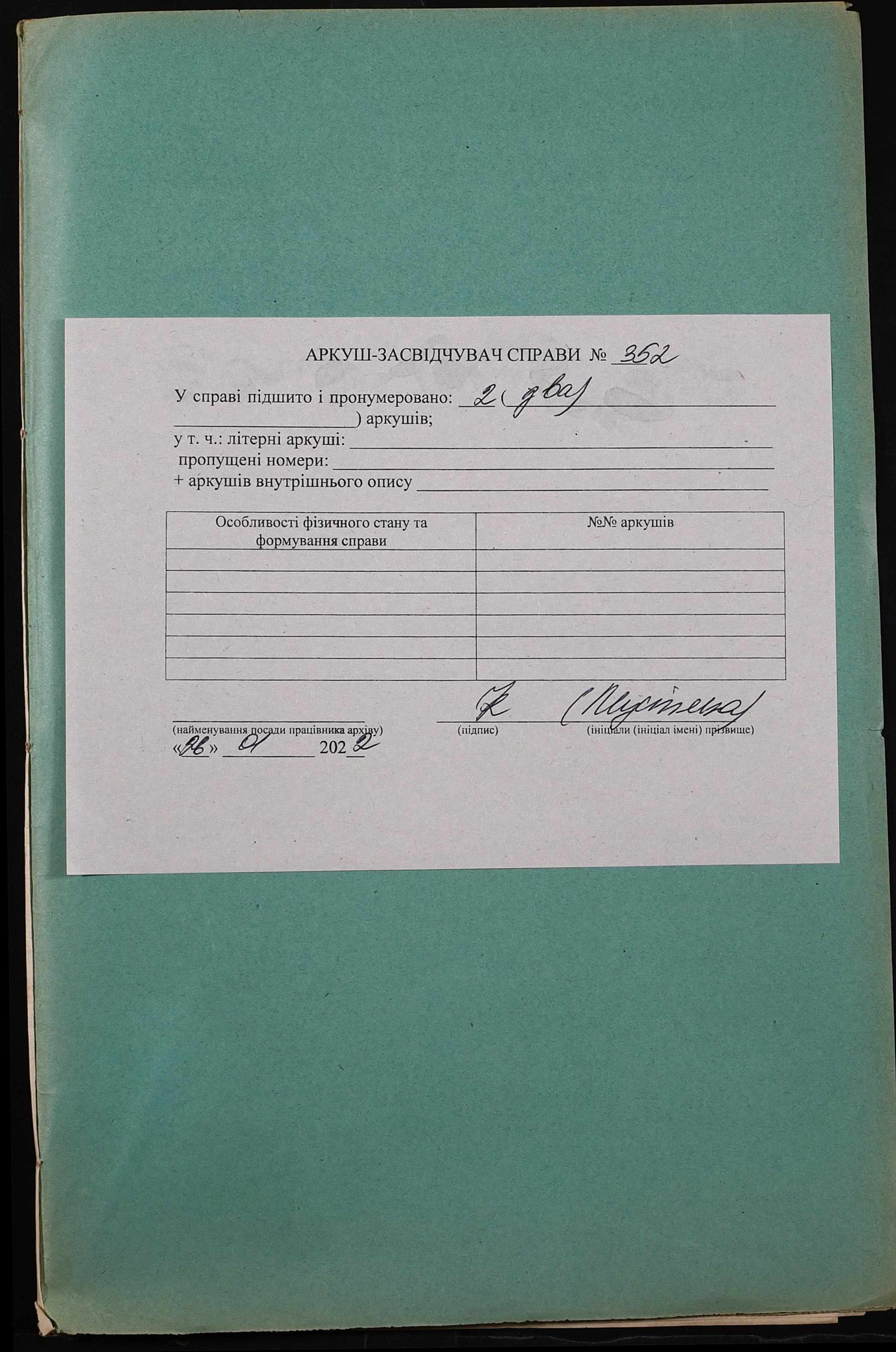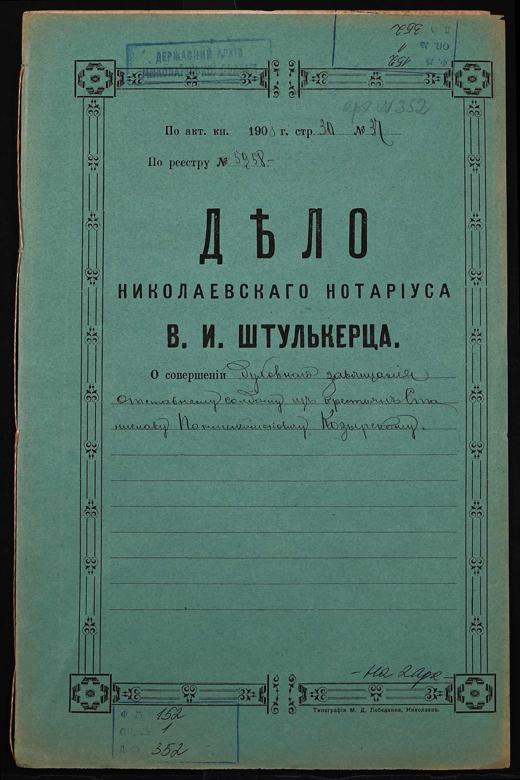Фонд 152 / Опис 1 / Справа 0352