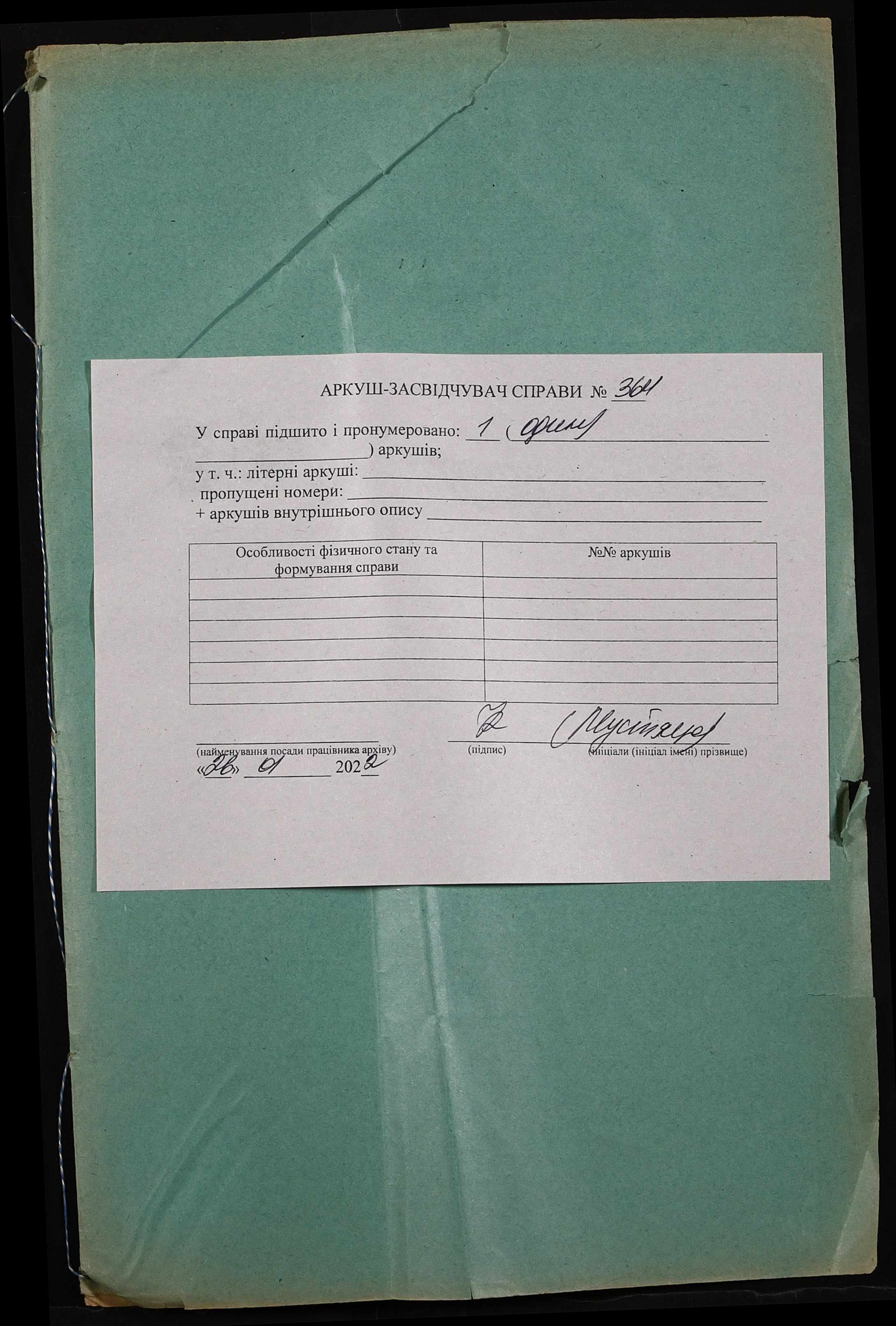 Фонд 152 / Опис 1 / Справа 0364