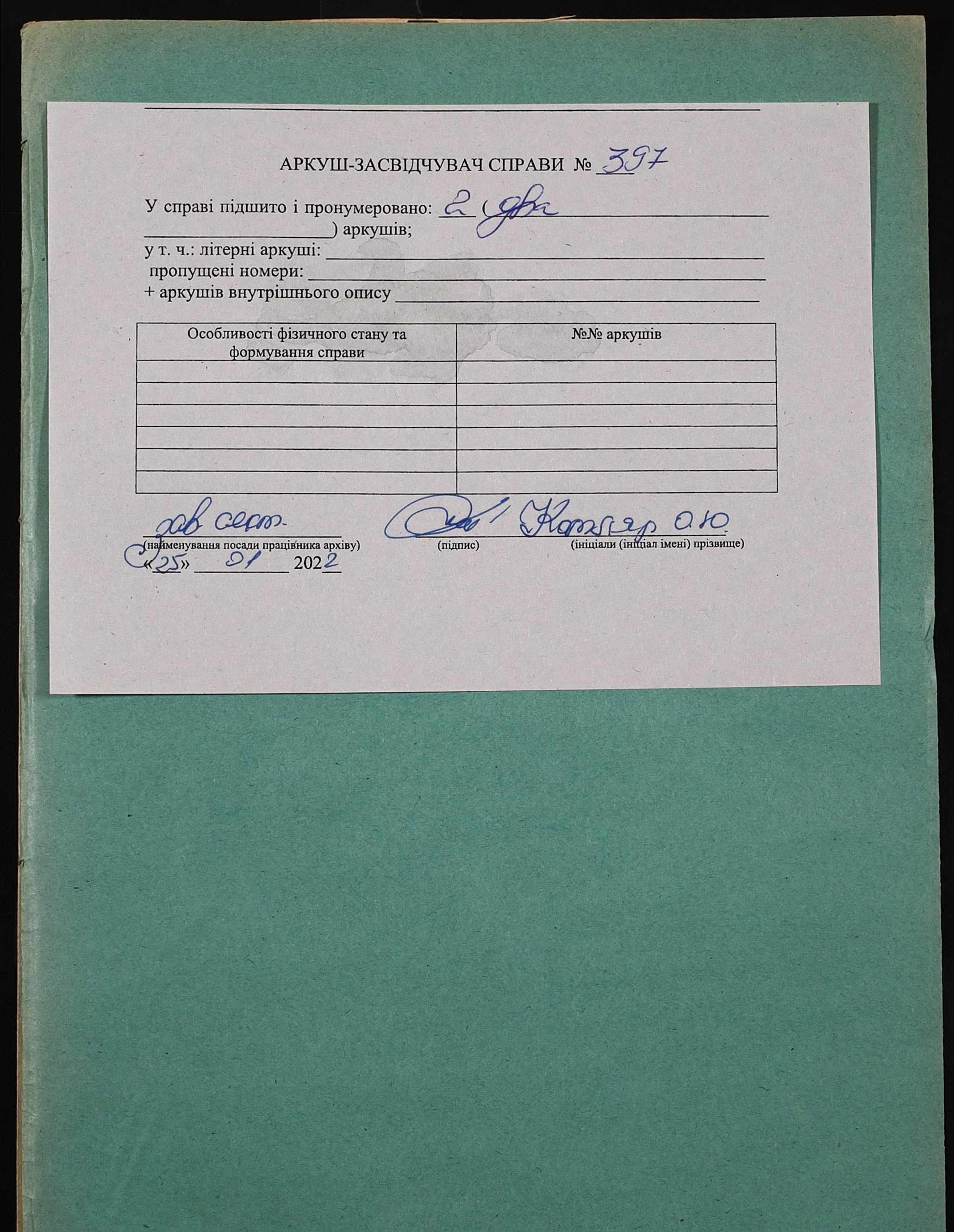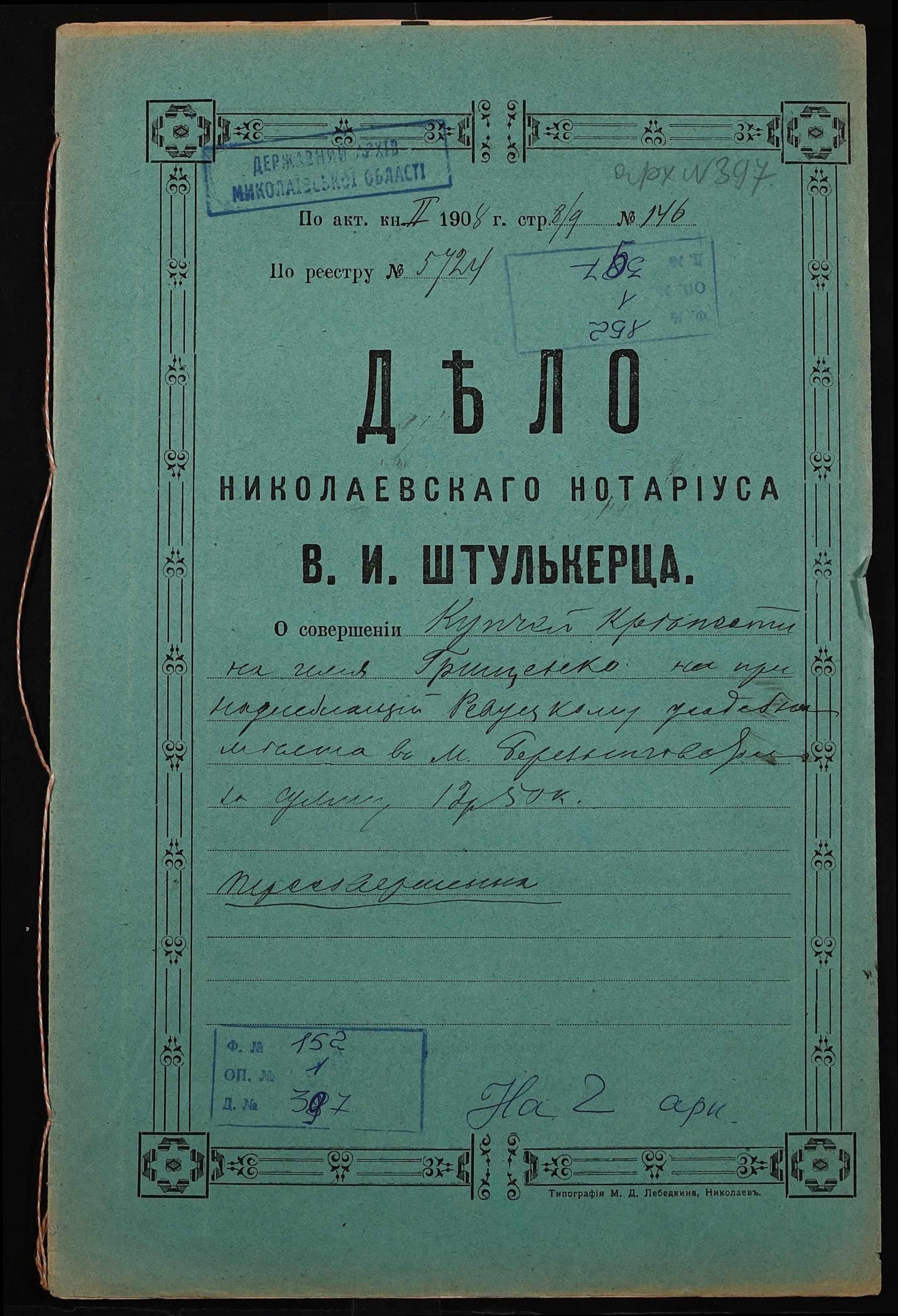 Фонд 152 / Опис 1 / Справа 0397
