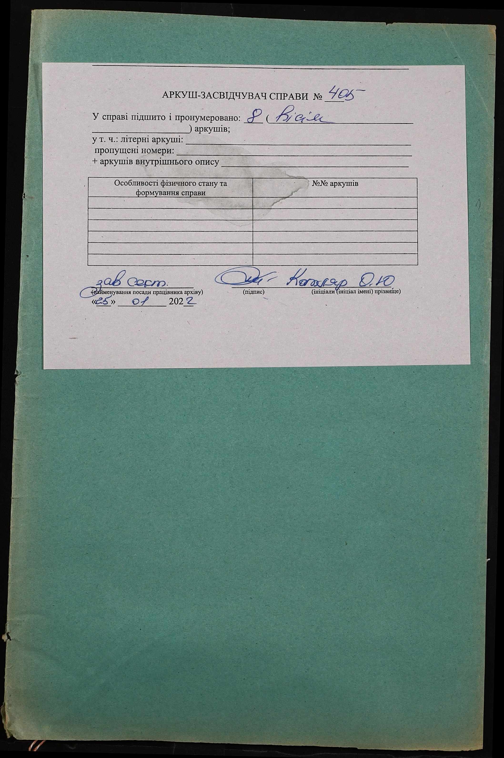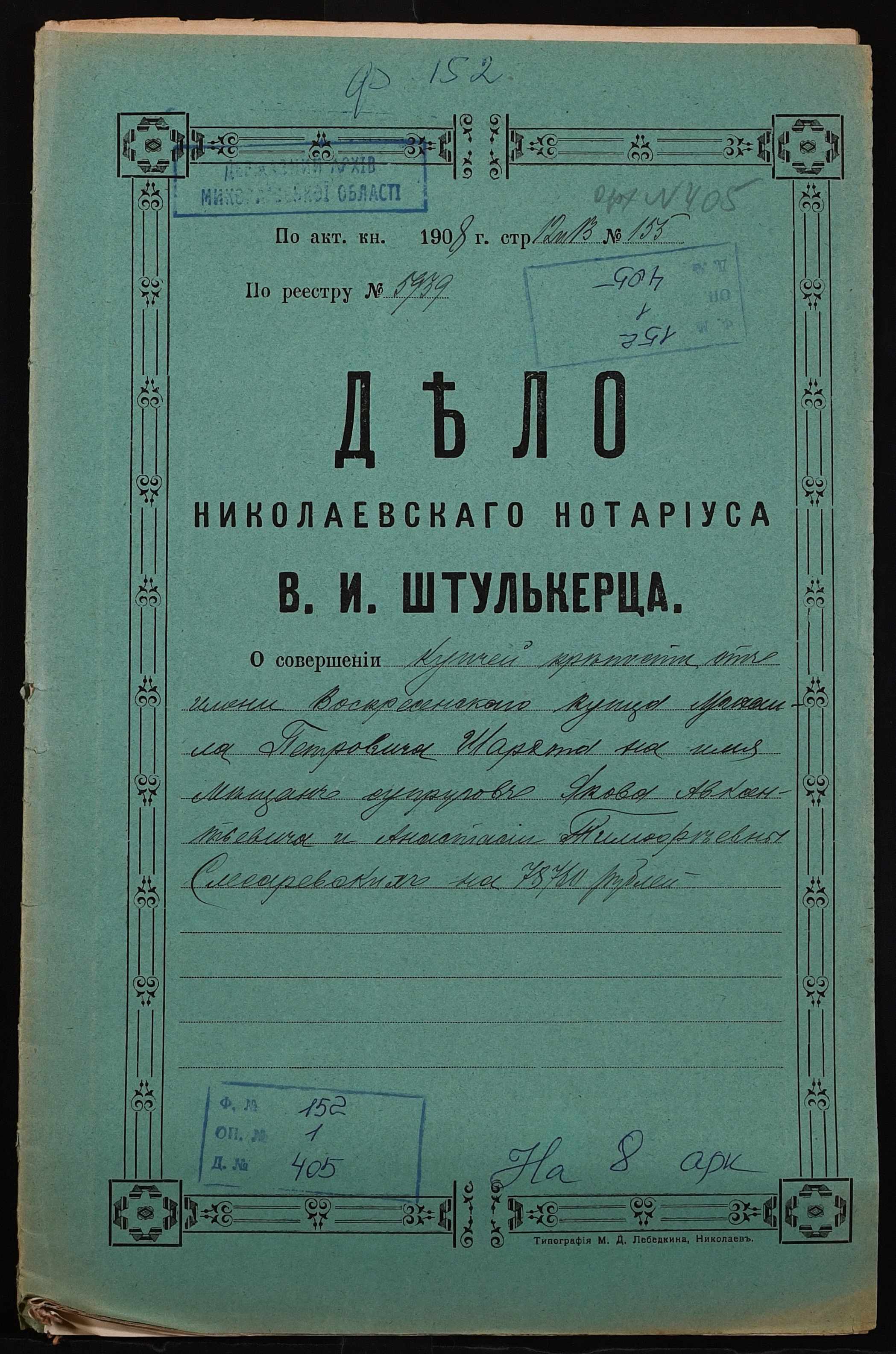 Фонд 152 / Опис 1 / Справа 0405