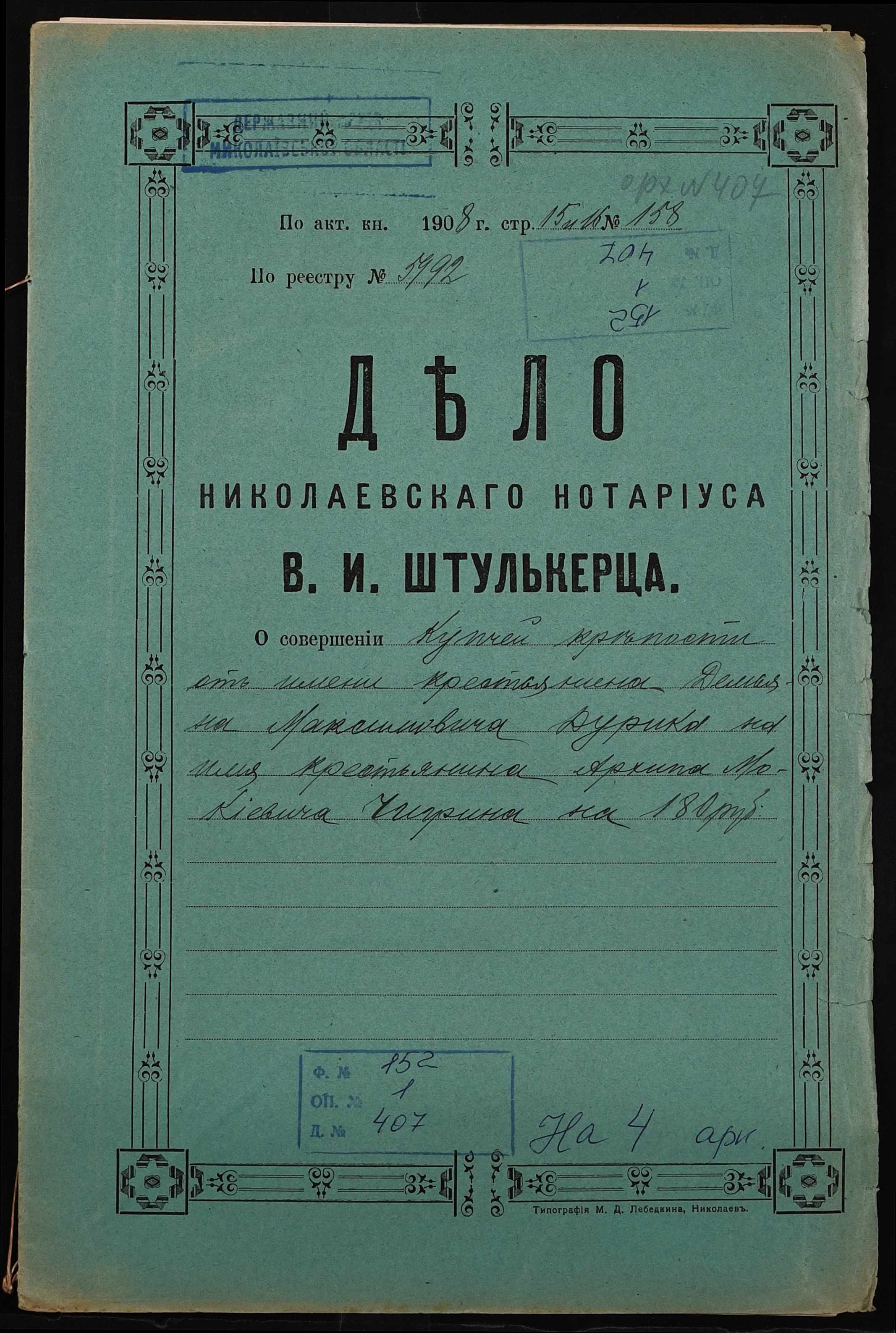 Фонд 152 / Опис 1 / Справа 0407