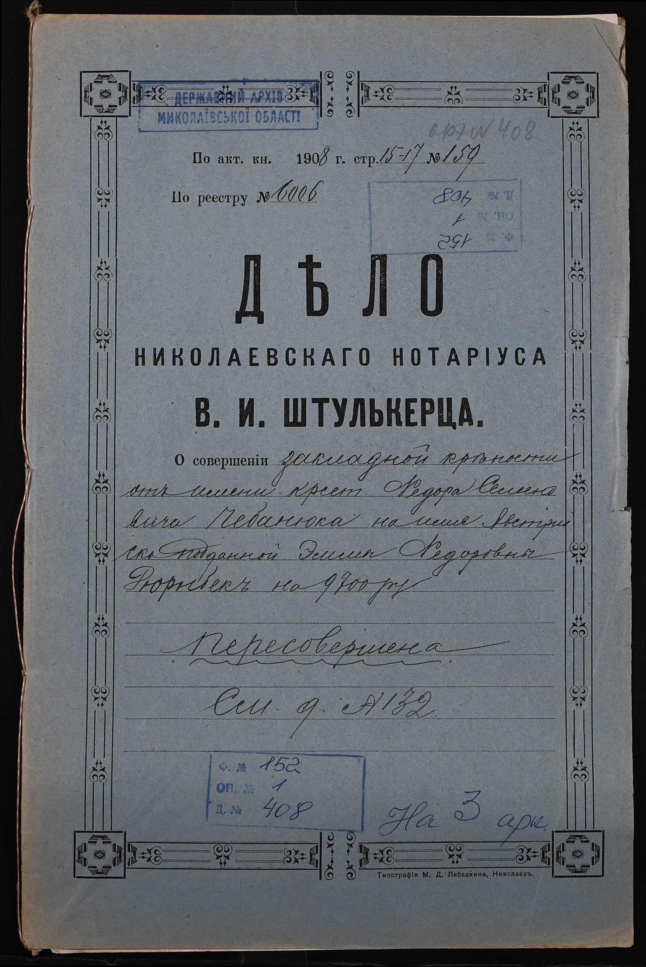 Фонд 152 / Опис 1 / Справа 0408