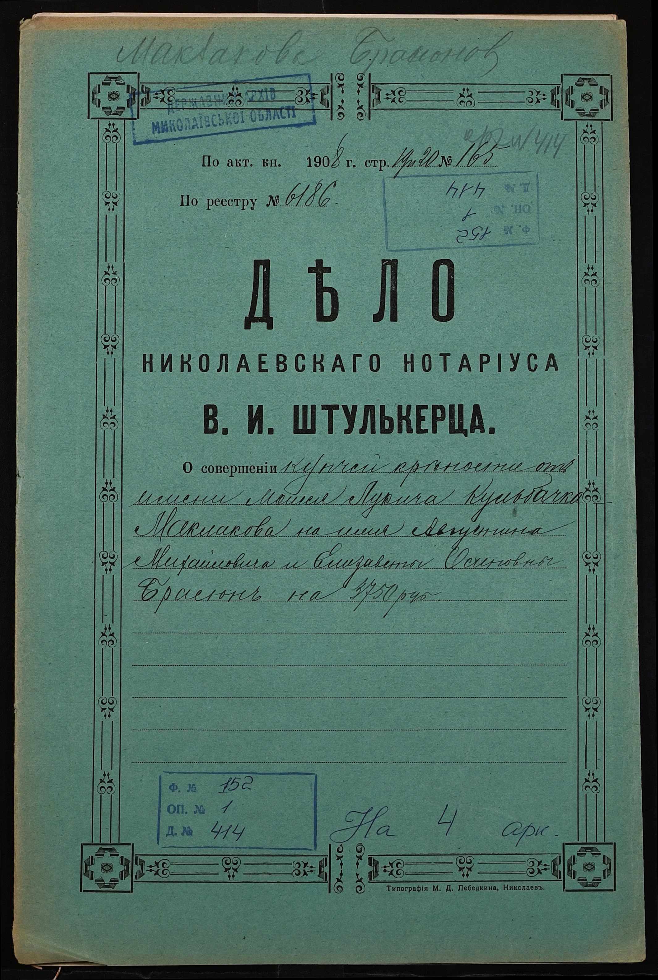 Фонд 152 / Опис 1 / Справа 0414