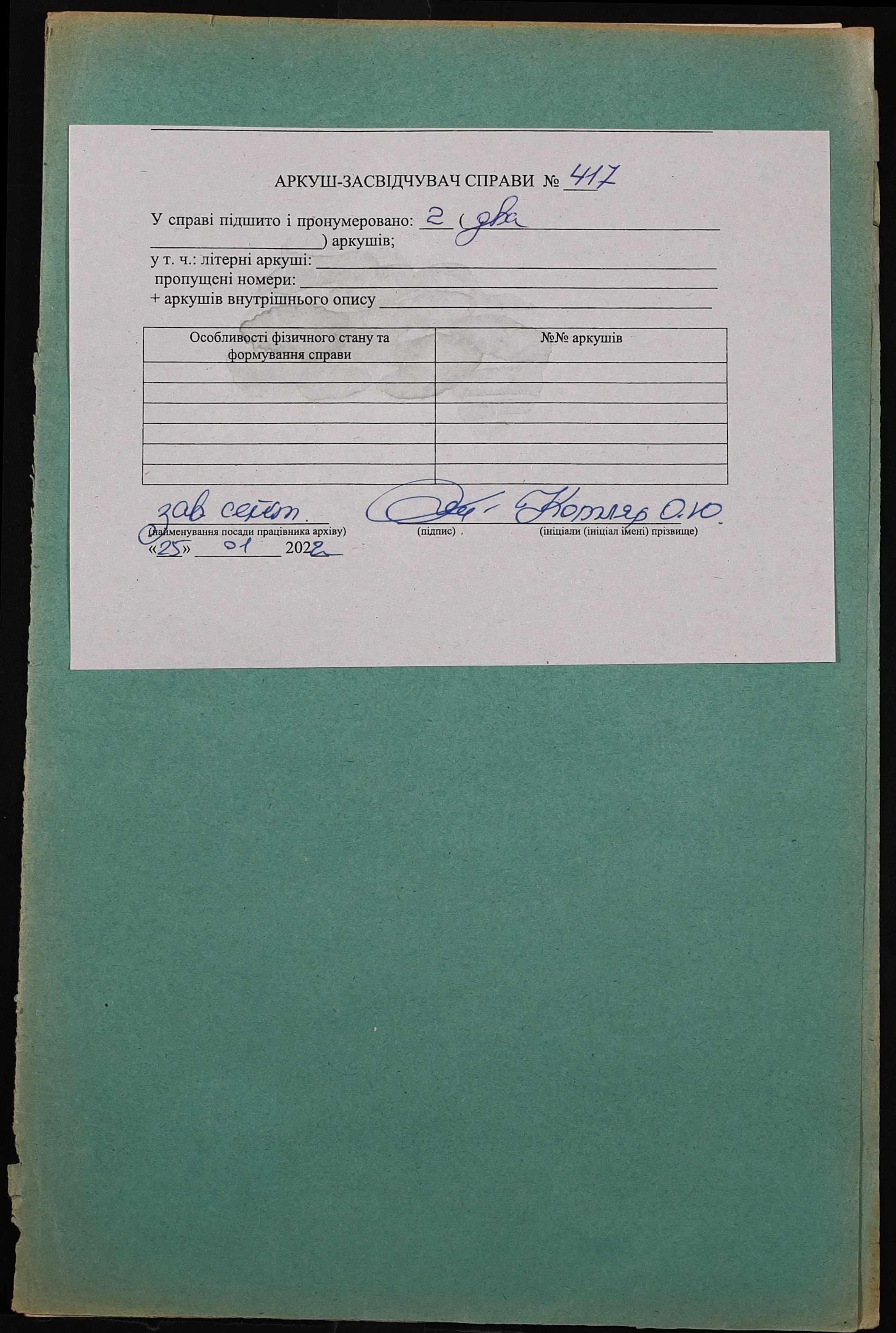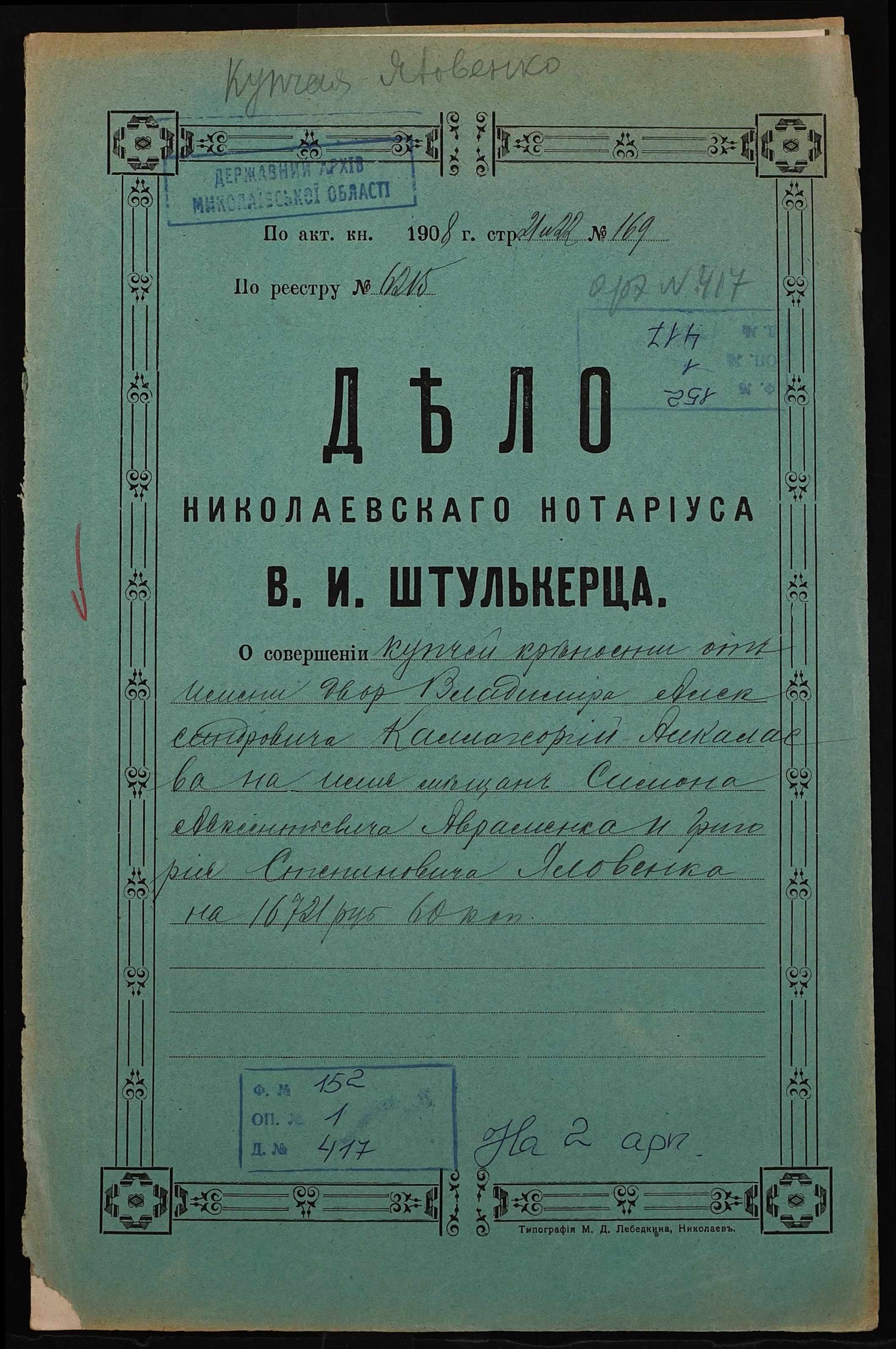 Фонд 152 / Опис 1 / Справа 0417
