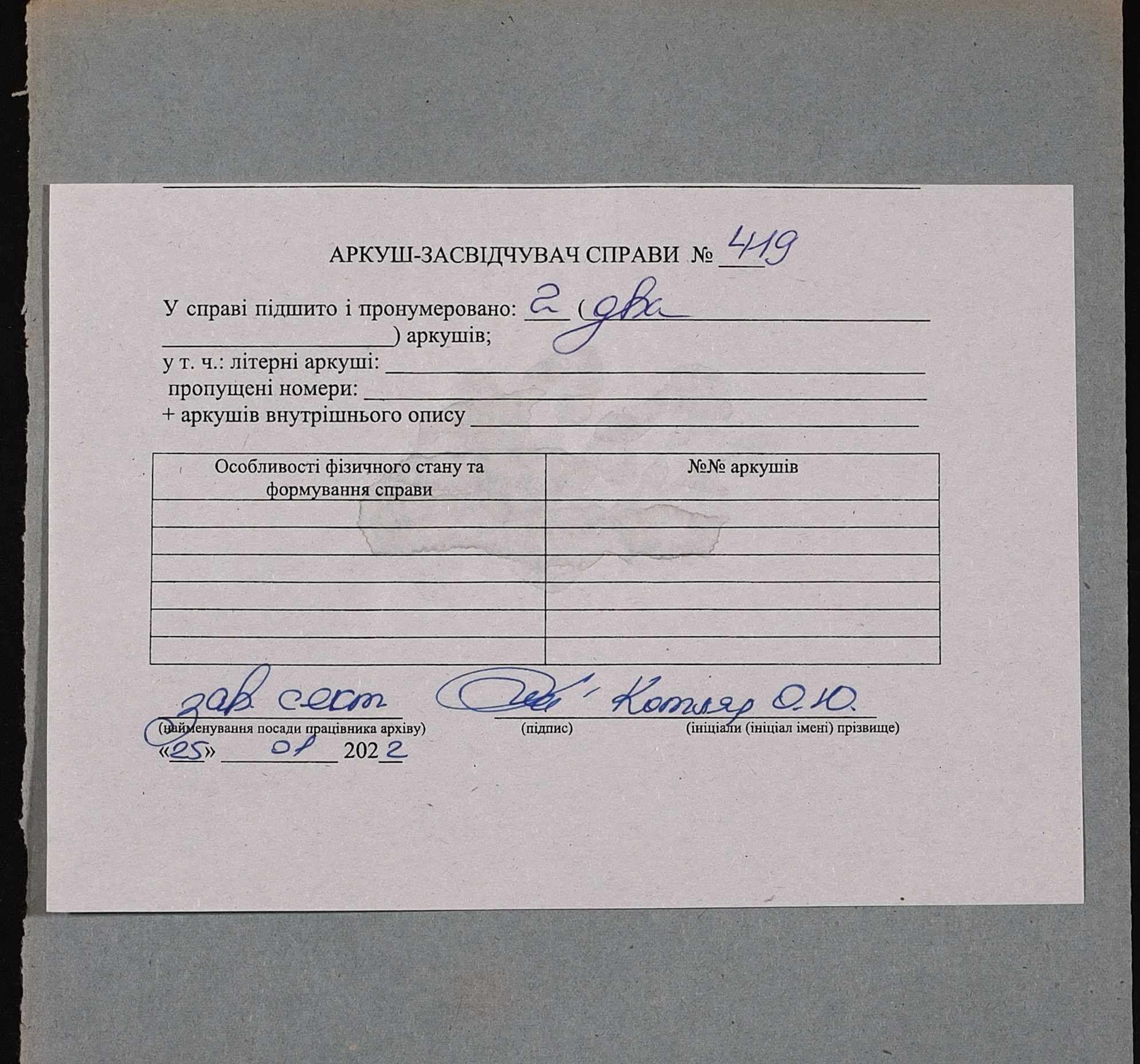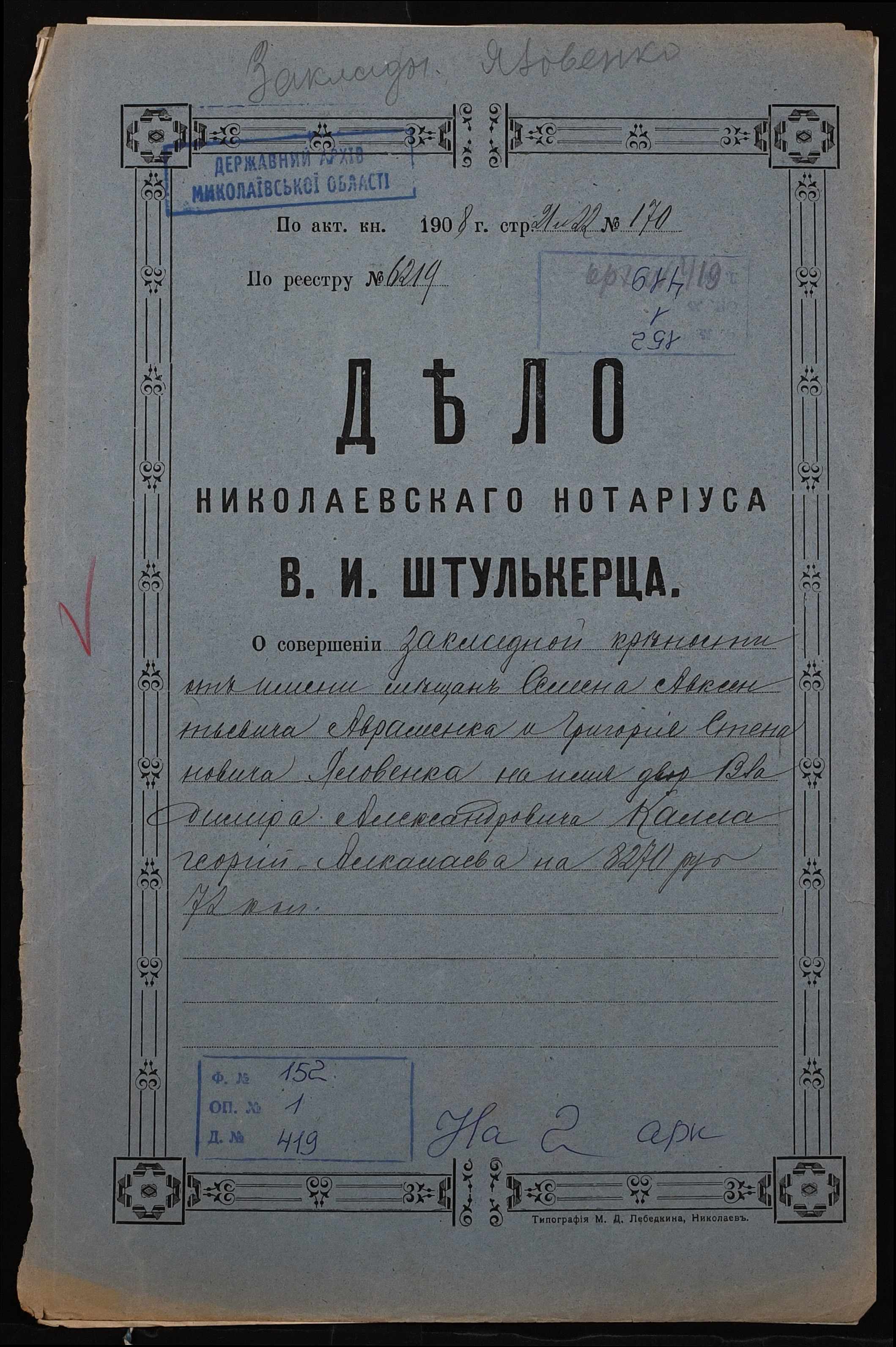 Фонд 152 / Опис 1 / Справа 0419