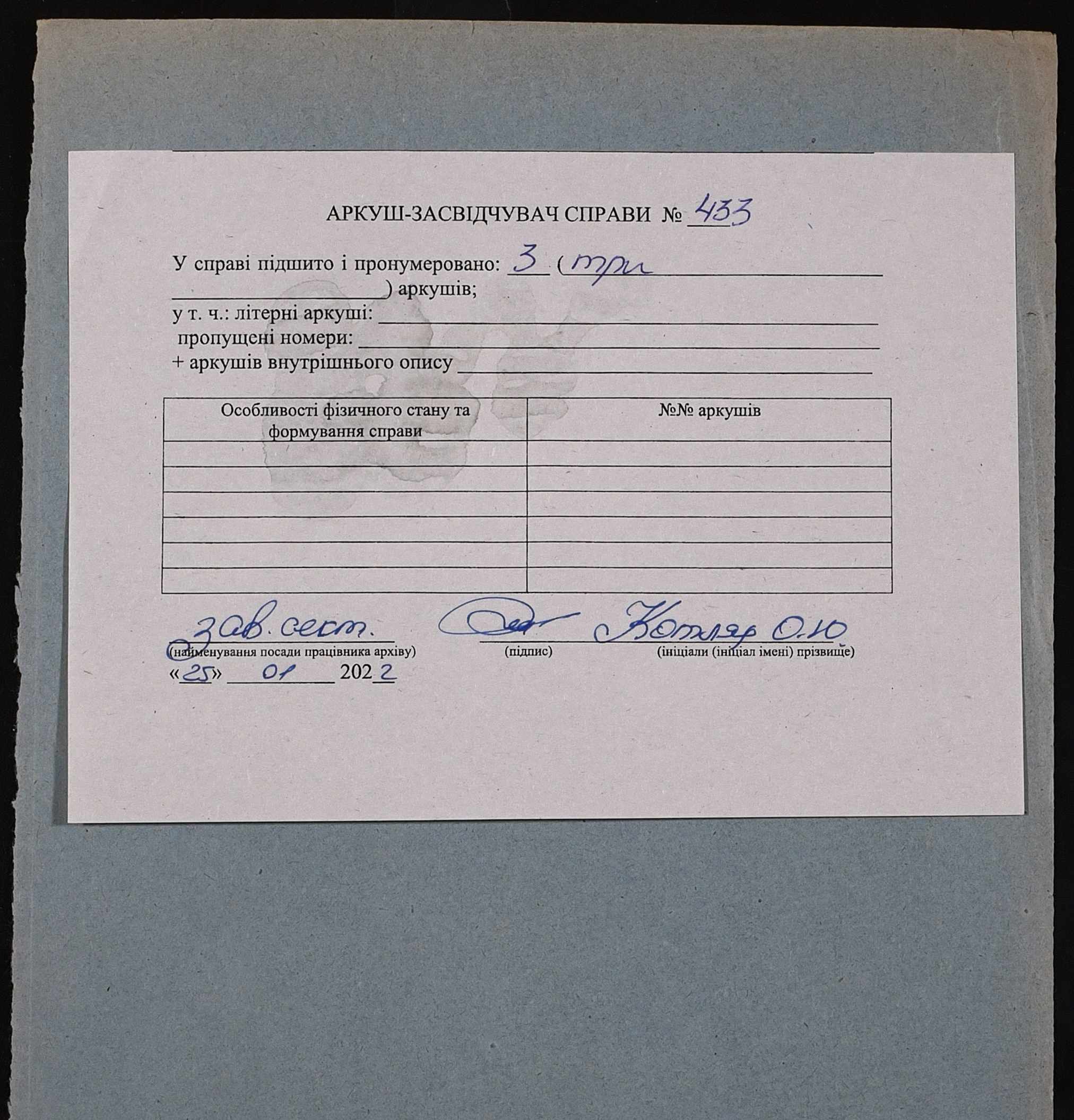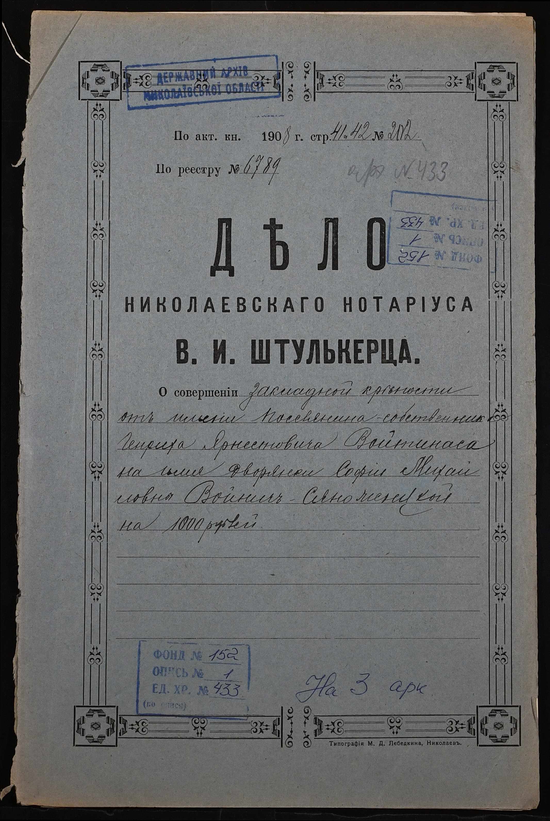 Фонд 152 / Опис 1 / Справа 0433