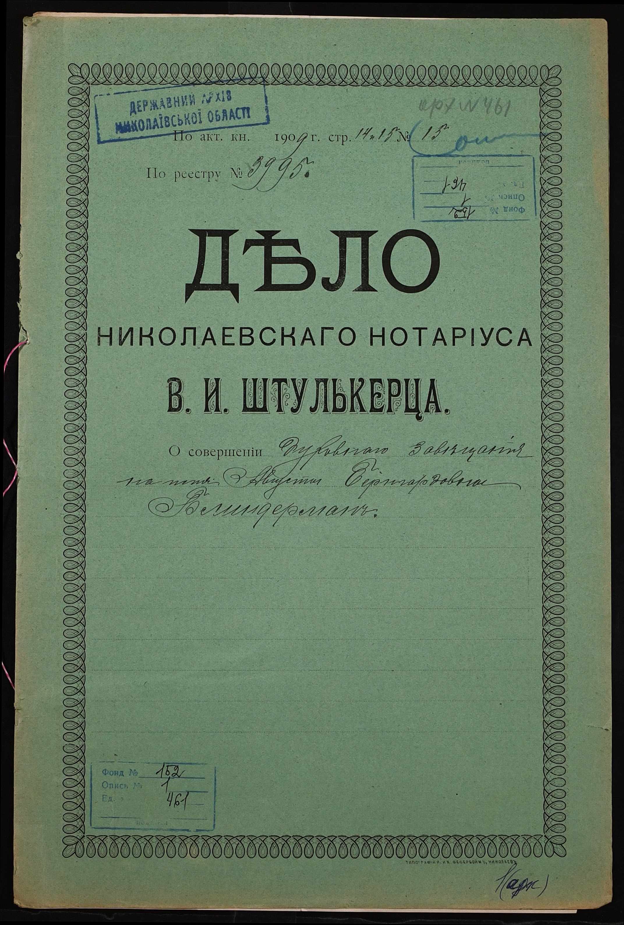 Фонд 152 / Опис 1 / Справа 0461