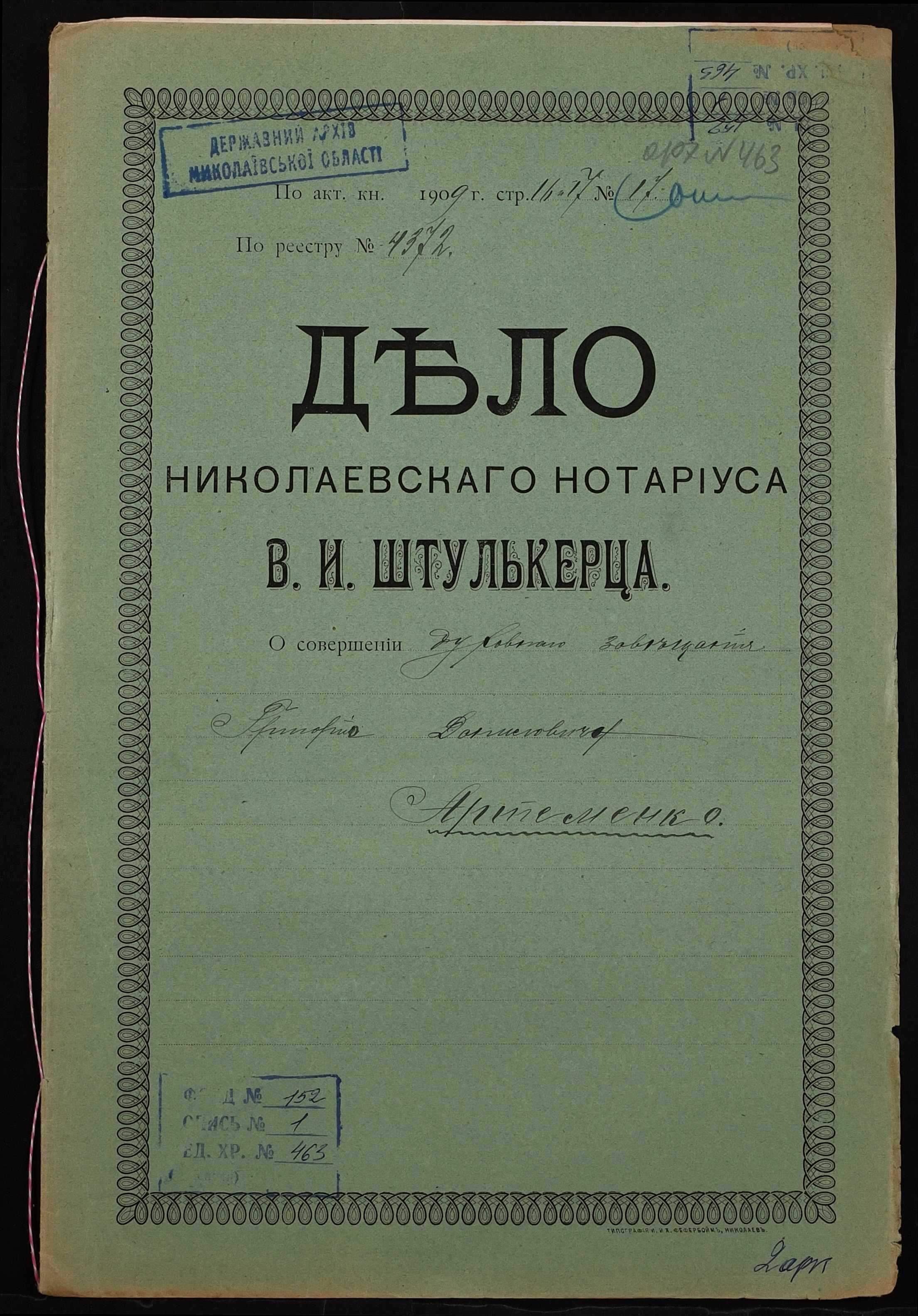 Фонд 152 / Опис 1 / Справа 0463