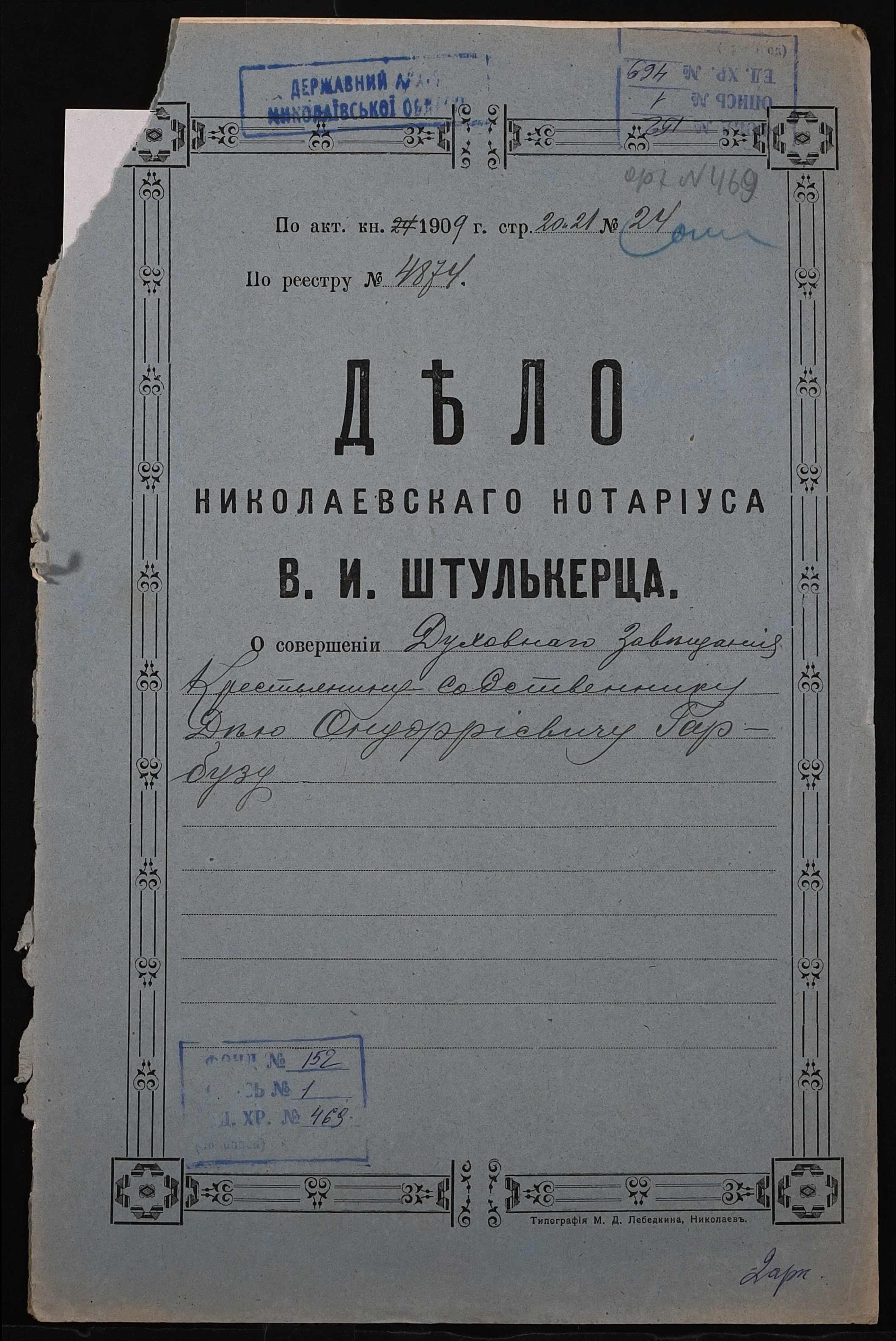 Фонд 152 / Опис 1 / Справа 0469