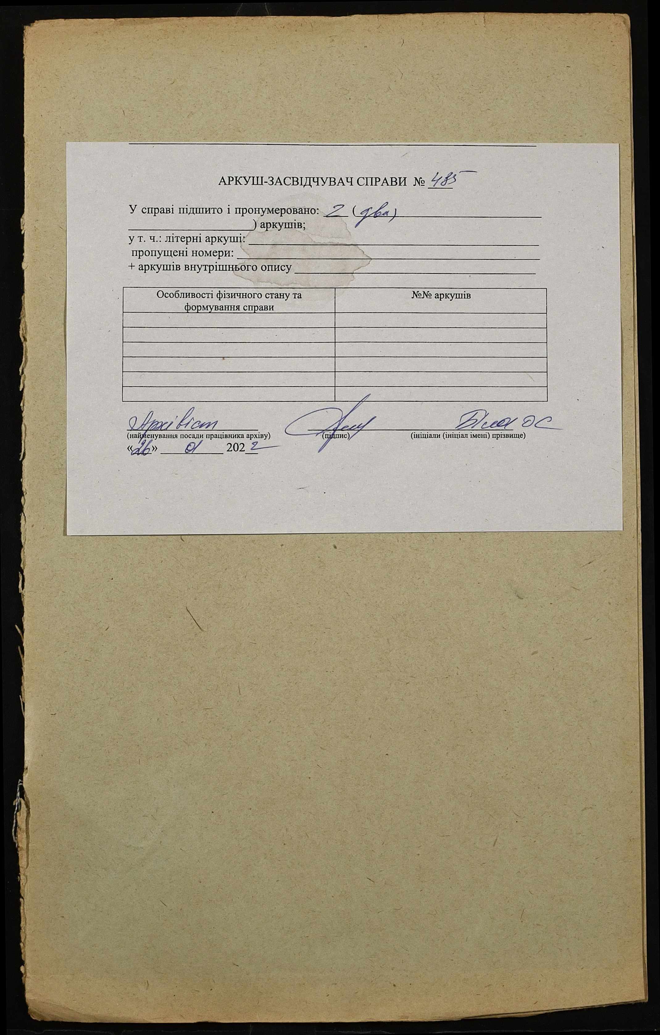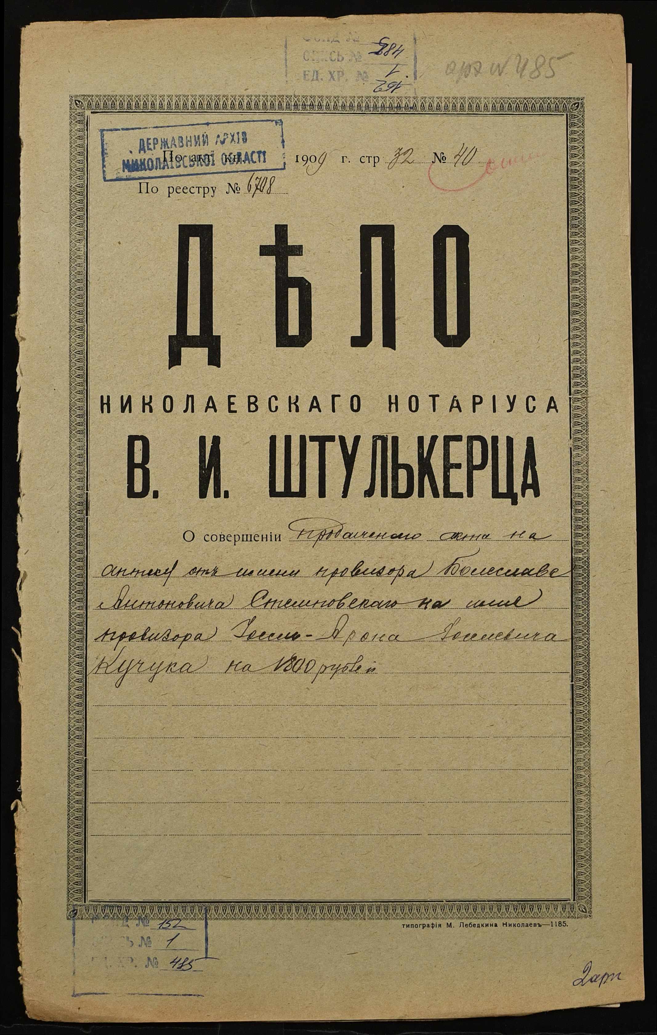 Фонд 152 / Опис 1 / Справа 0485