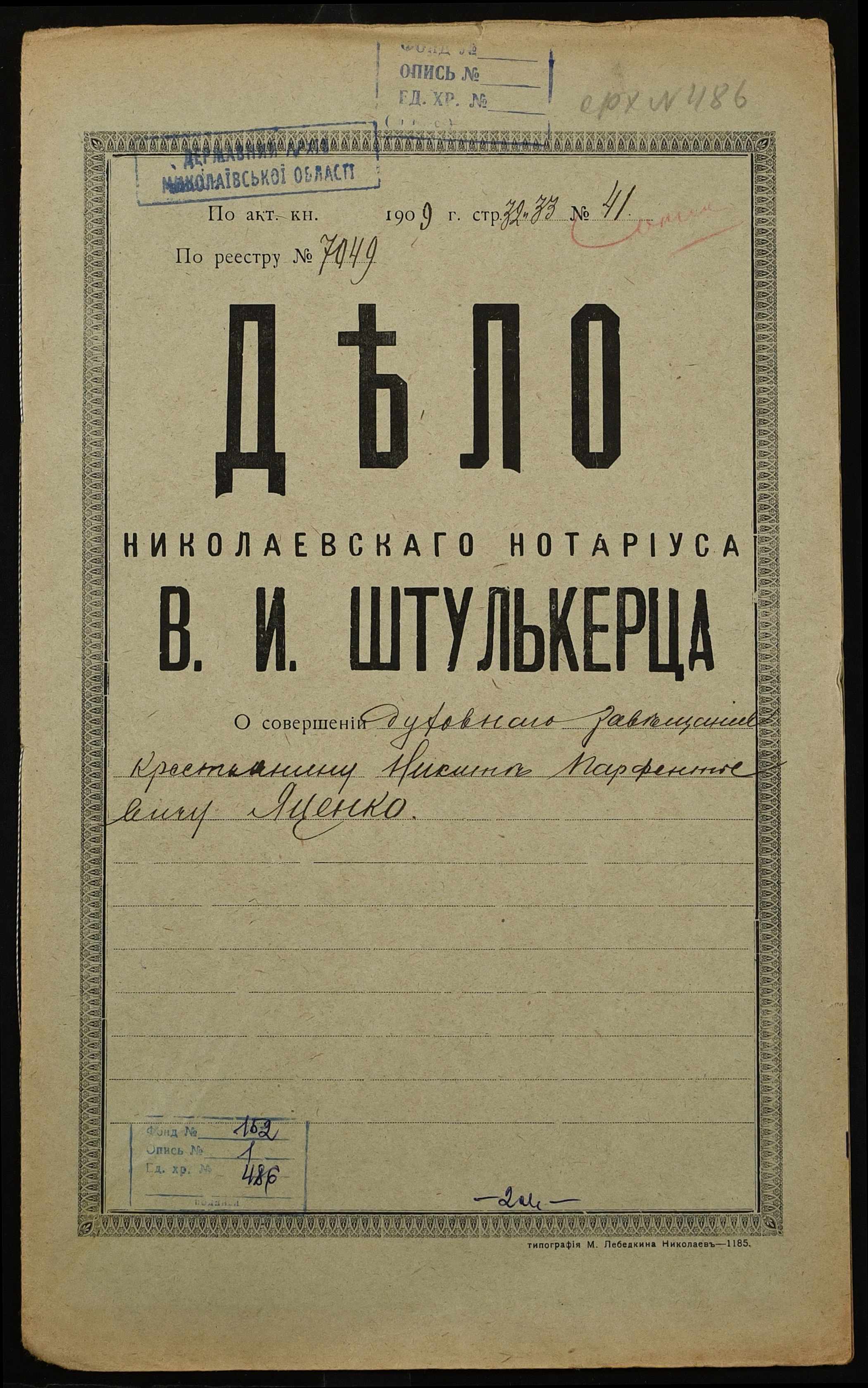 Фонд 152 / Опис 1 / Справа 0486