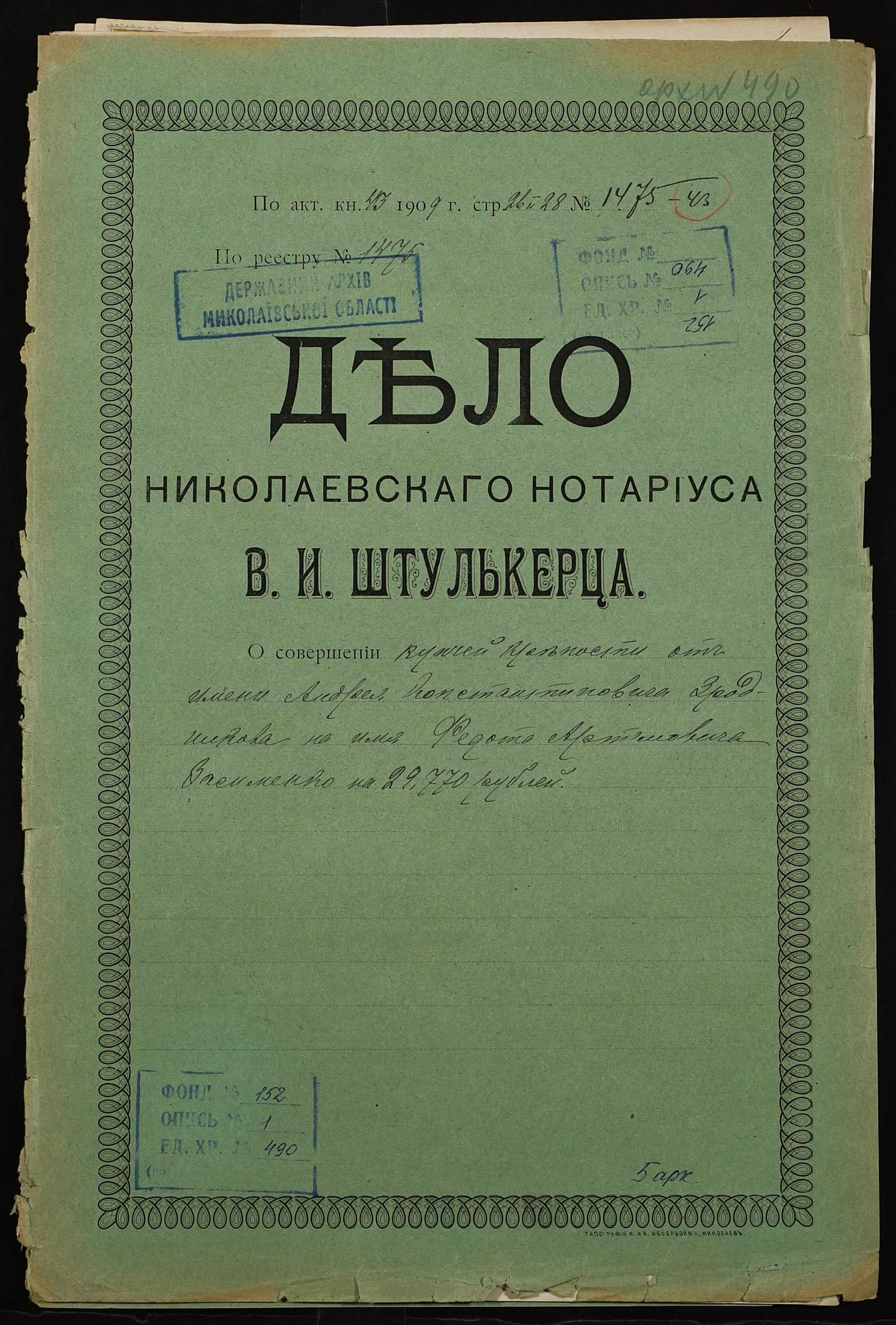 Фонд 152 / Опис 1 / Справа 0490