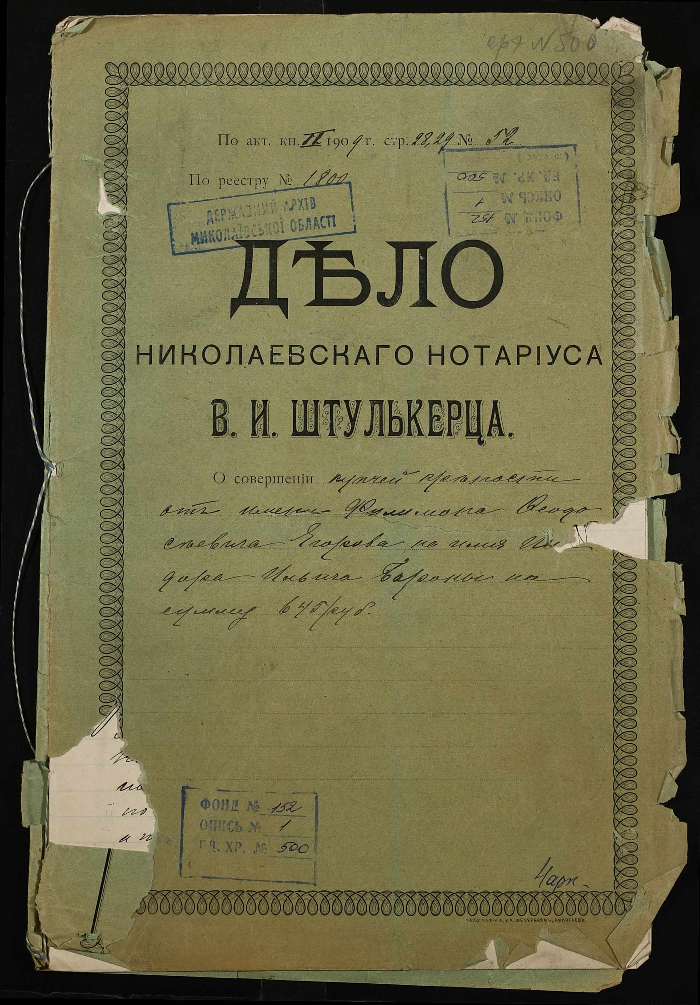 Фонд 152 / Опис 1 / Справа 0500
