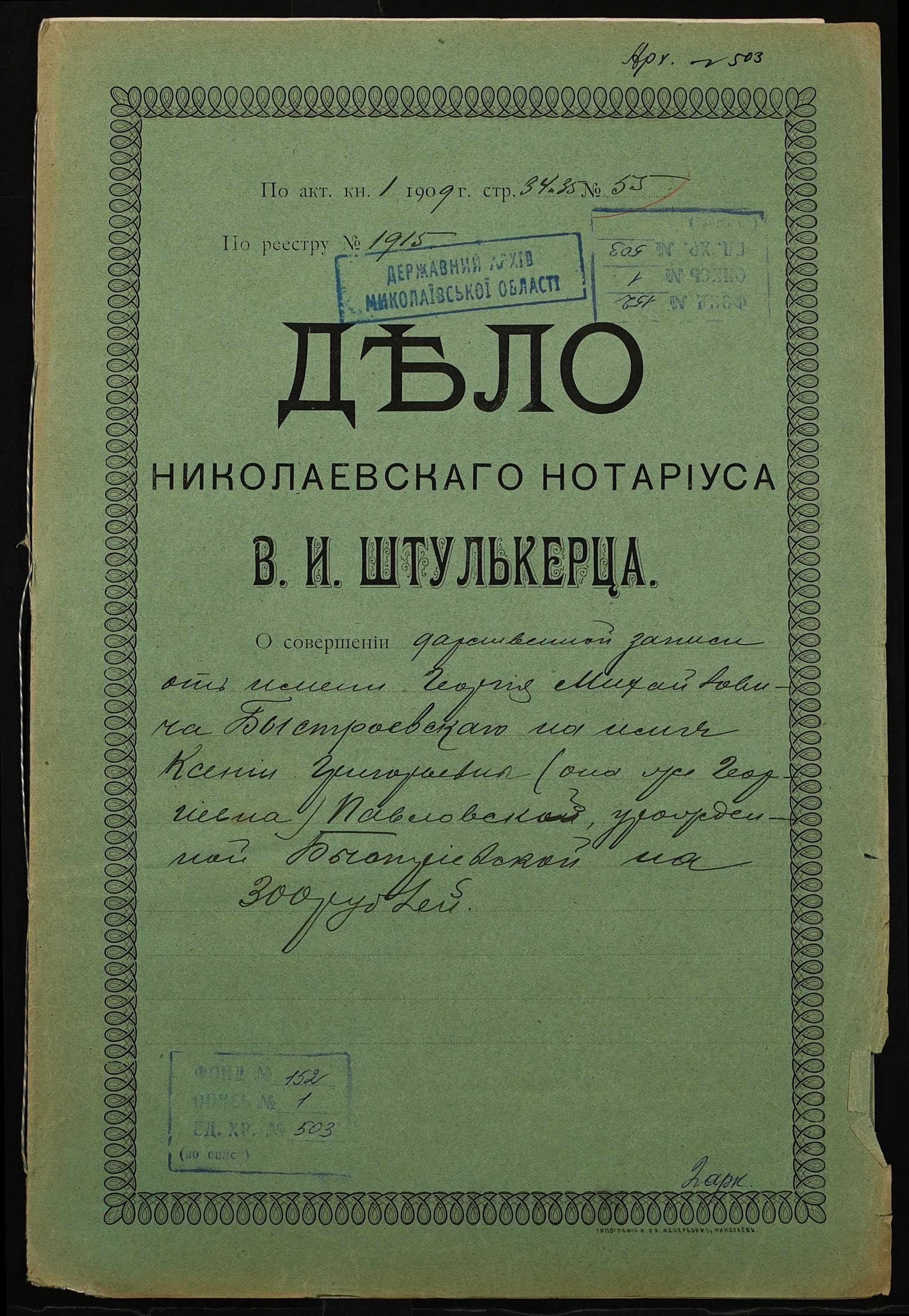 Фонд 152 / Опис 1 / Справа 0503