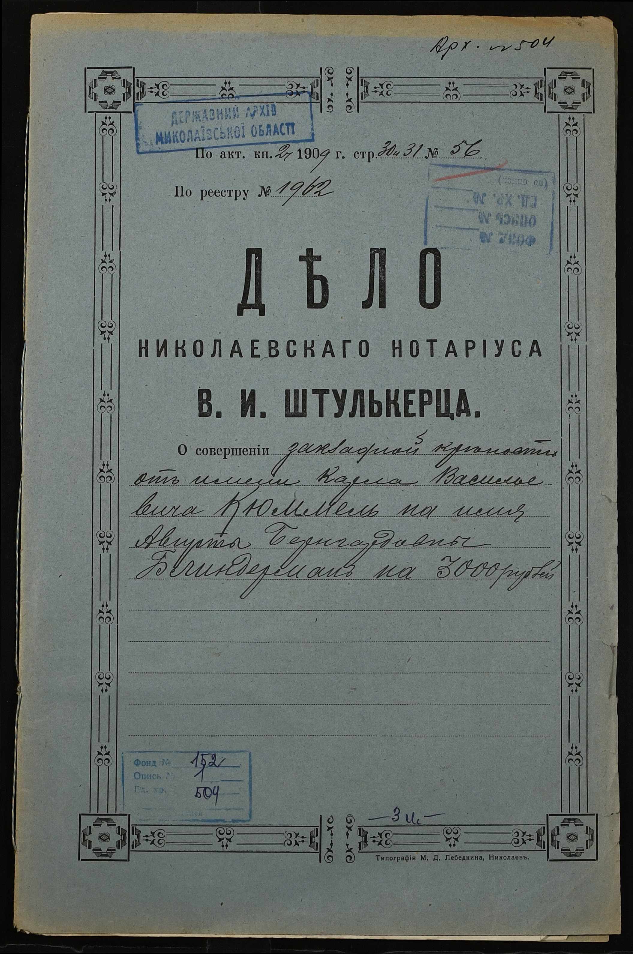 Фонд 152 / Опис 1 / Справа 0504