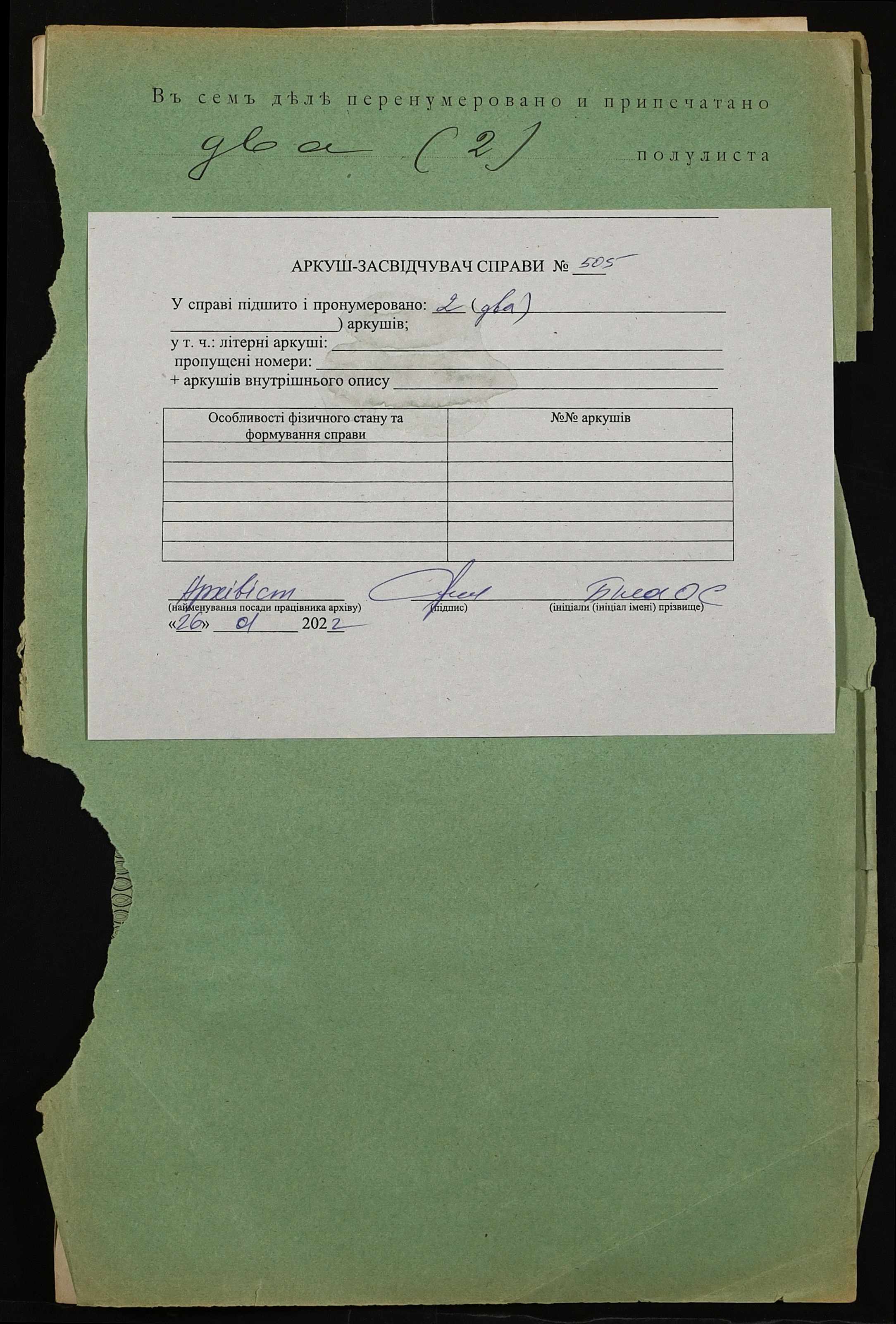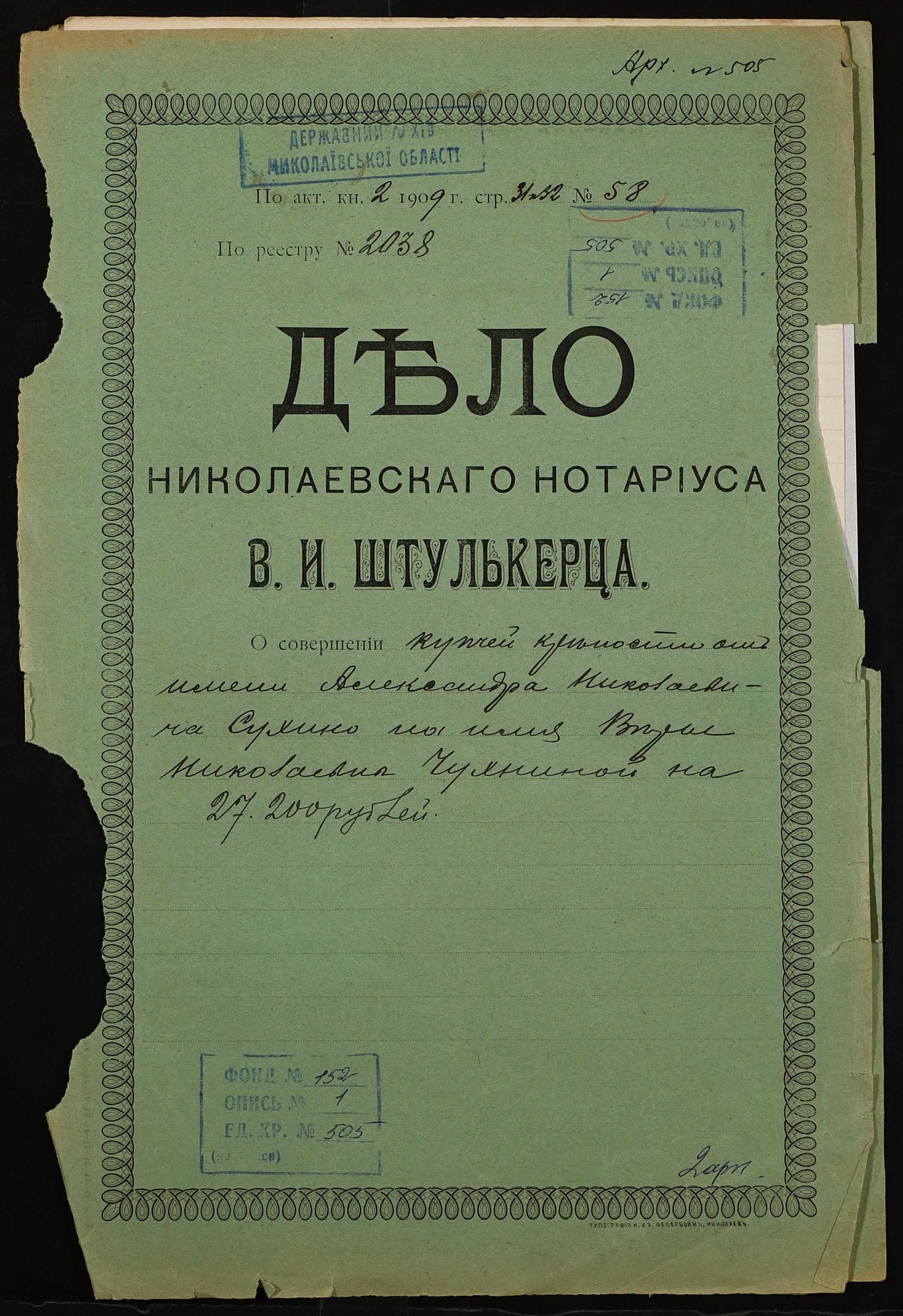 Фонд 152 / Опис 1 / Справа 0505