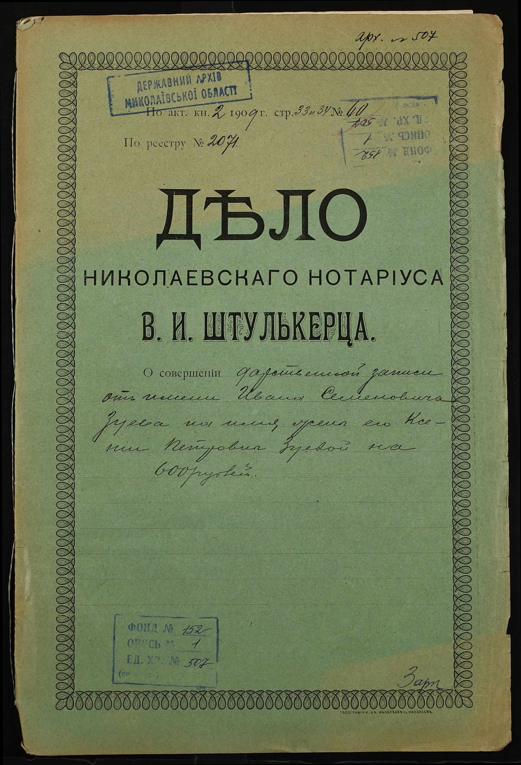 Фонд 152 / Опис 1 / Справа 0507