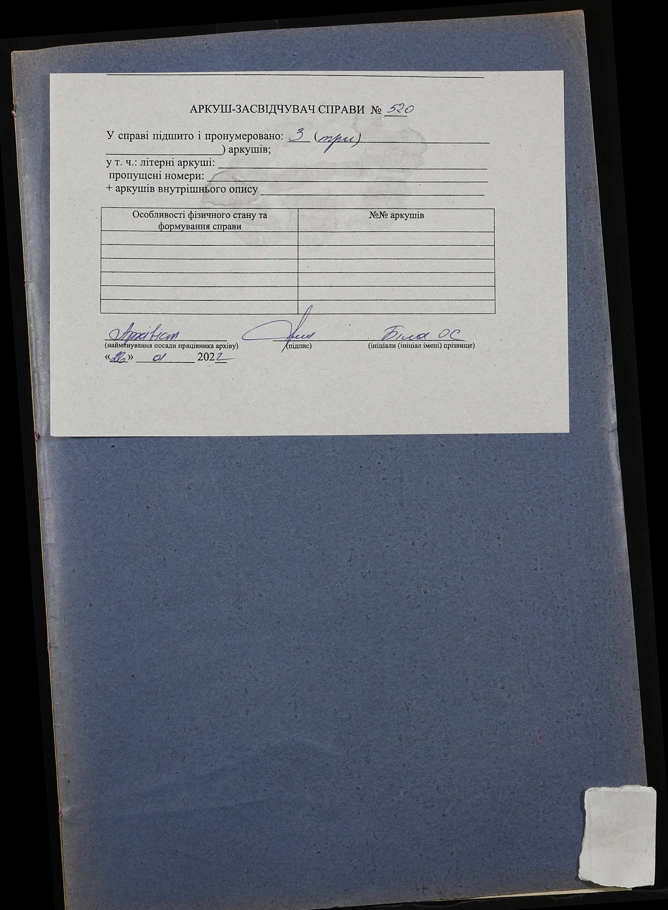 Фонд 152 / Опис 1 / Справа 0520