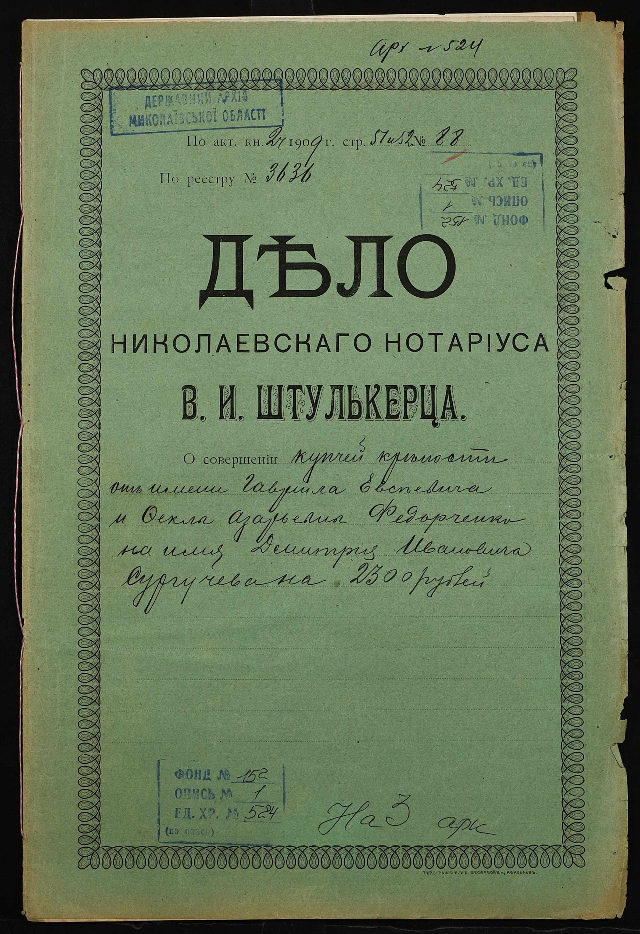 Фонд 152 / Опис 1 / Справа 0524