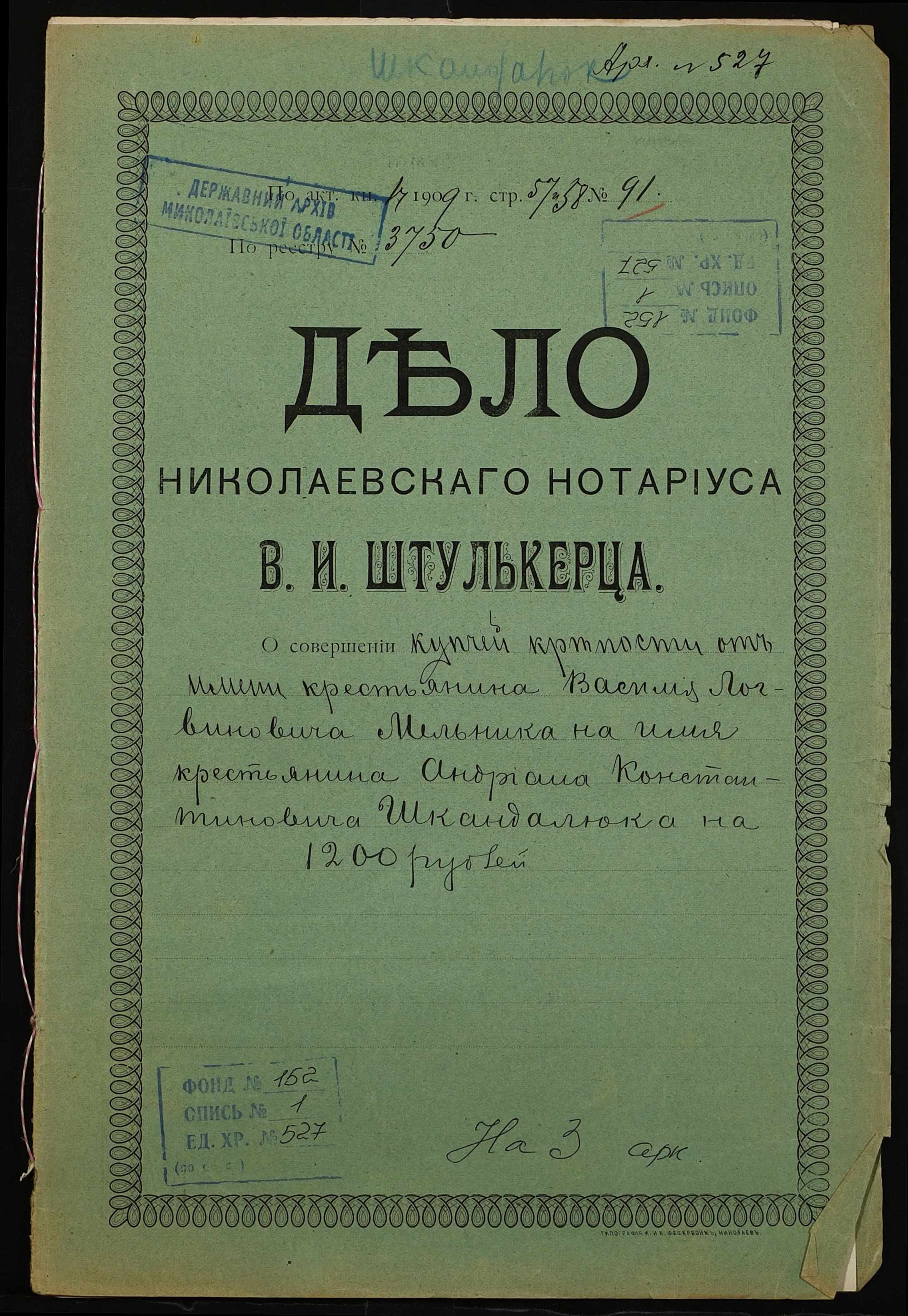 Фонд 152 / Опис 1 / Справа 0527