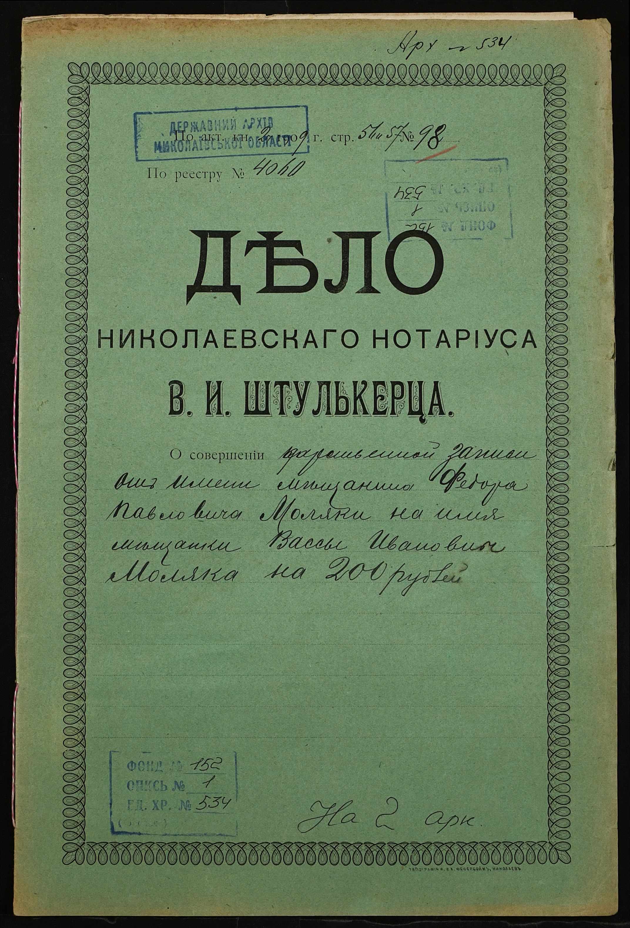 Фонд 152 / Опис 1 / Справа 0534