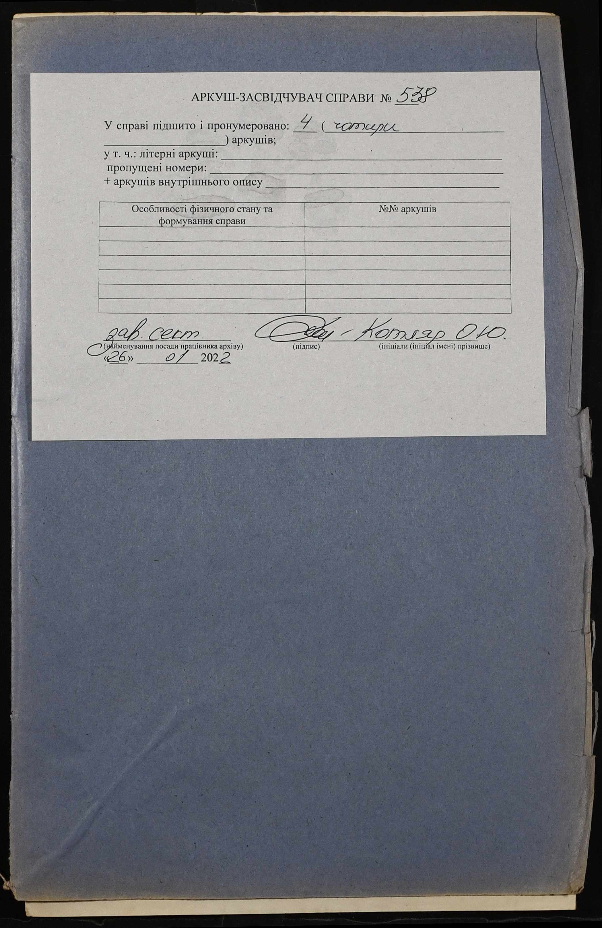 Фонд 152 / Опис 1 / Справа 0538