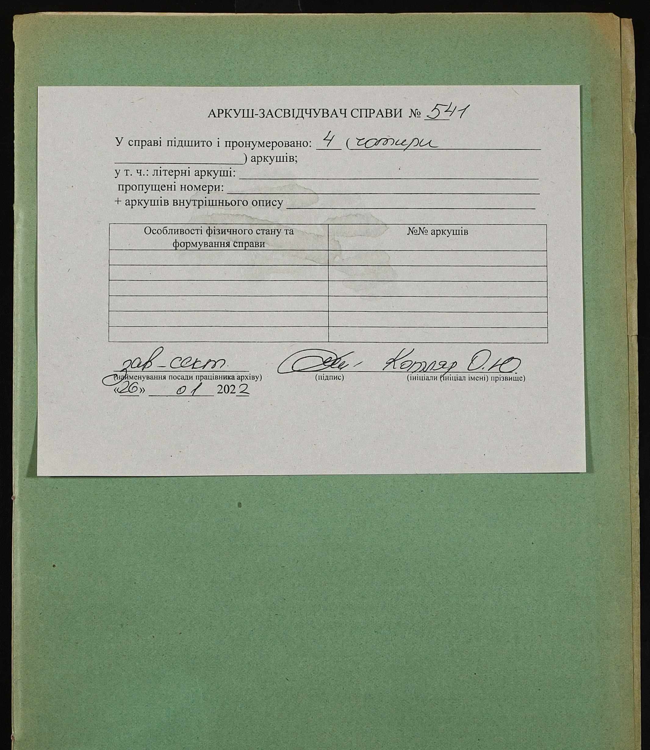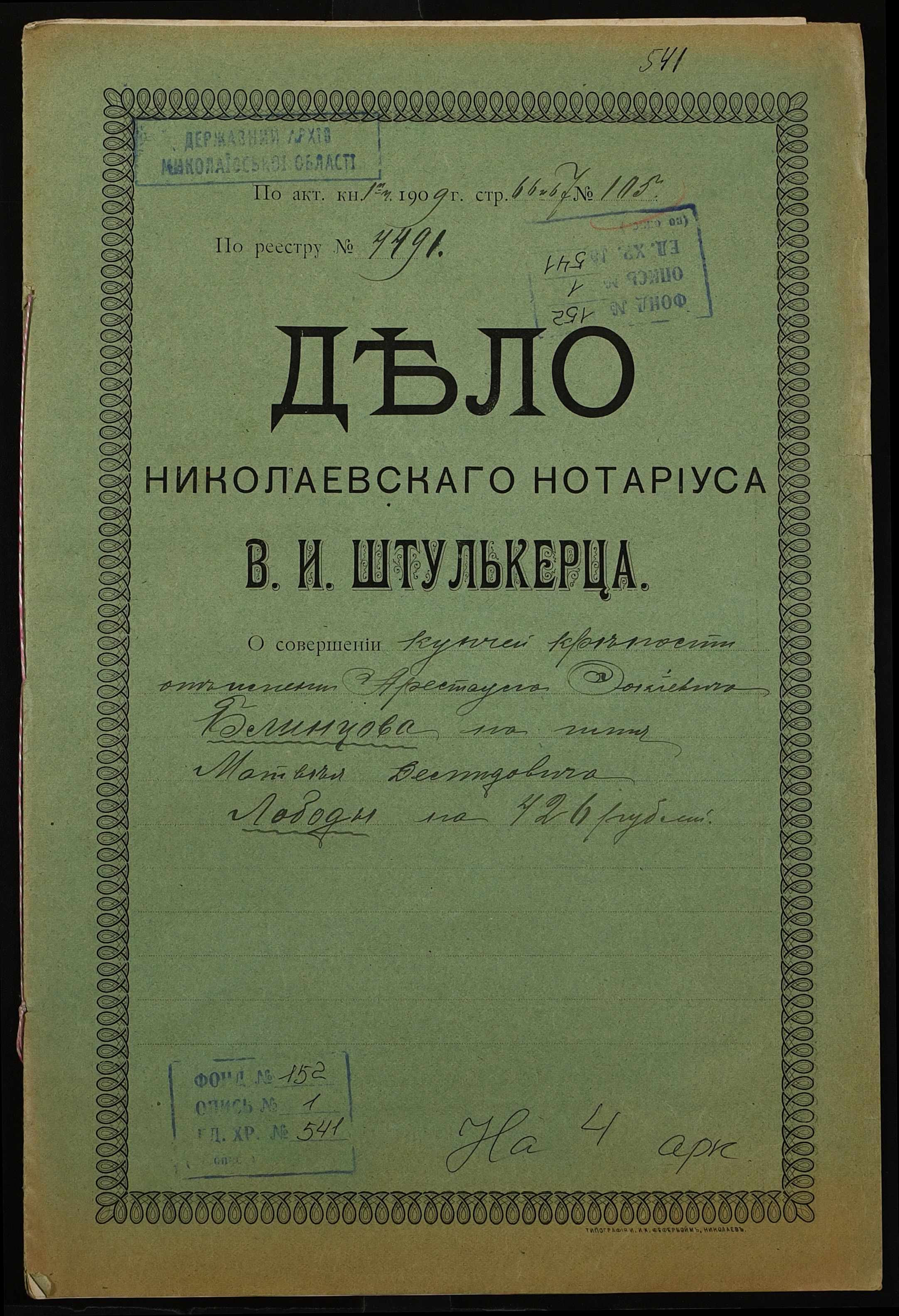 Фонд 152 / Опис 1 / Справа 0541