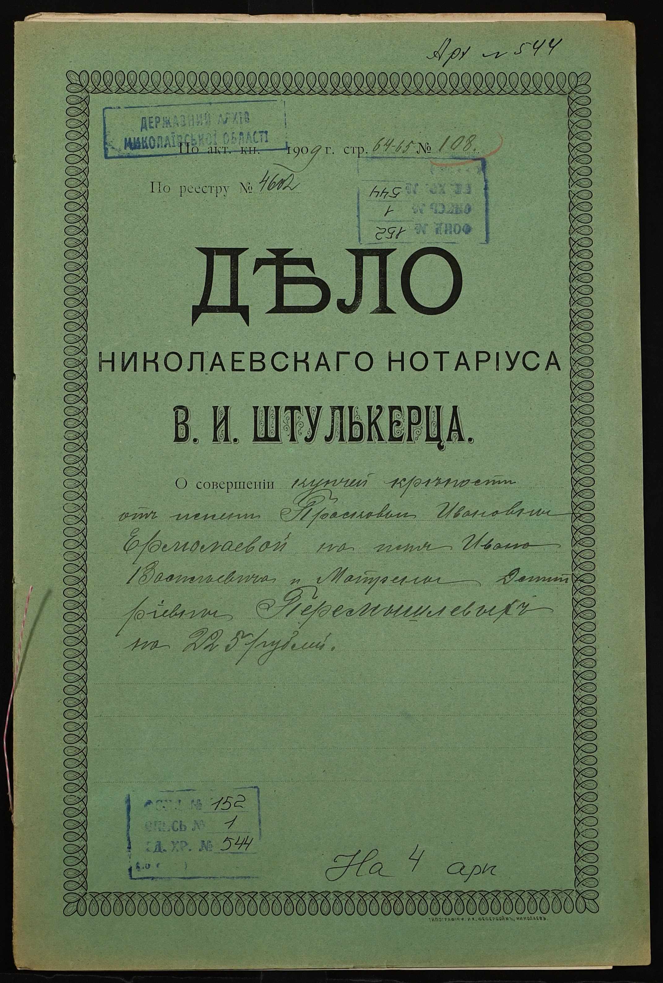 Фонд 152 / Опис 1 / Справа 0544