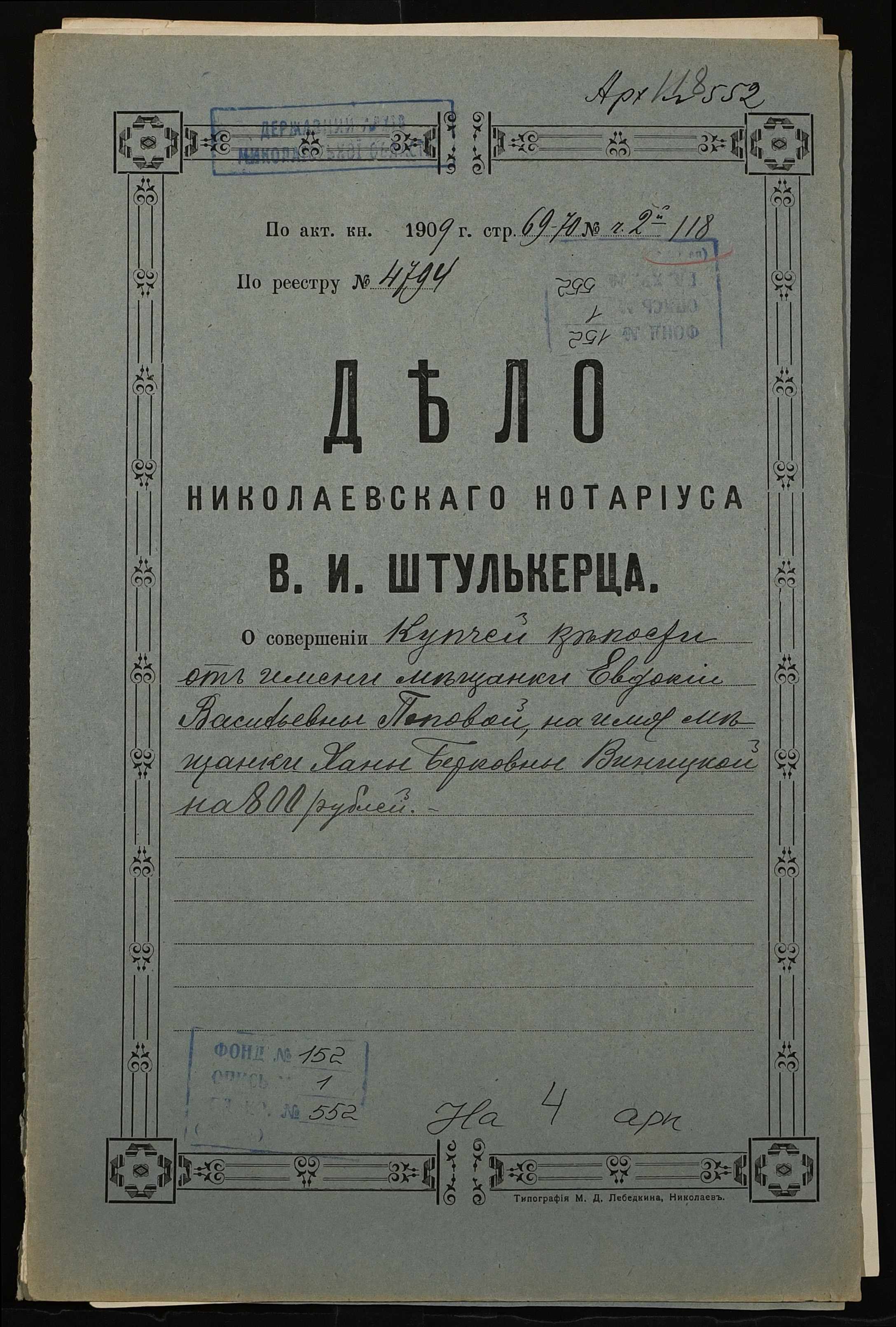 Фонд 152 / Опис 1 / Справа 0552